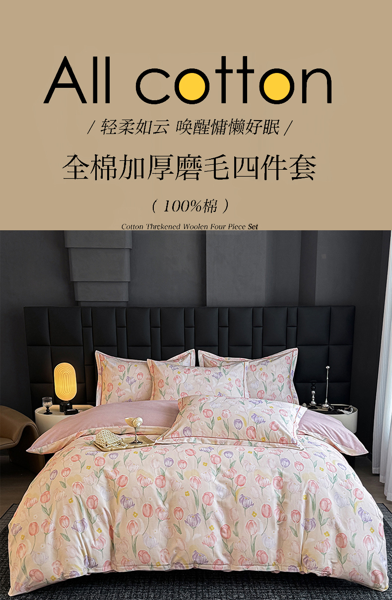 当前位置: 91家纺网 > 商品网购 > 床品套件 > 四件套 > 全棉普通四件套 > 金盛纺 2025新款全棉纯棉加厚磨毛印花四件套 春光郁金
