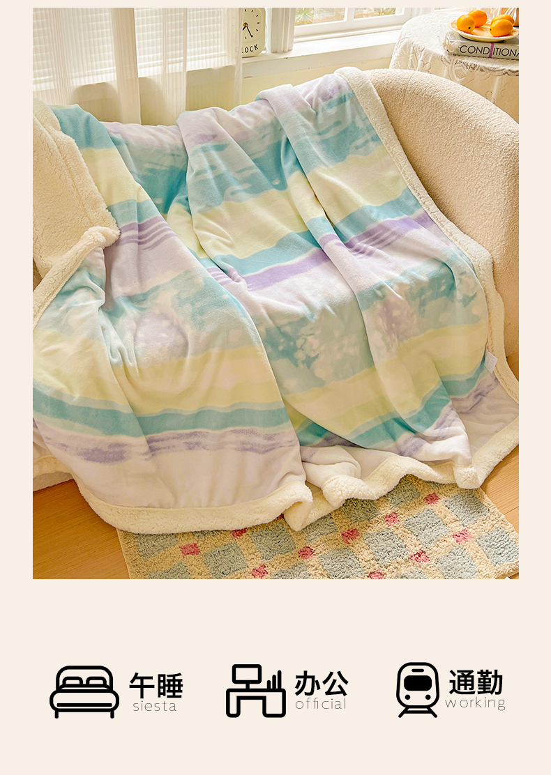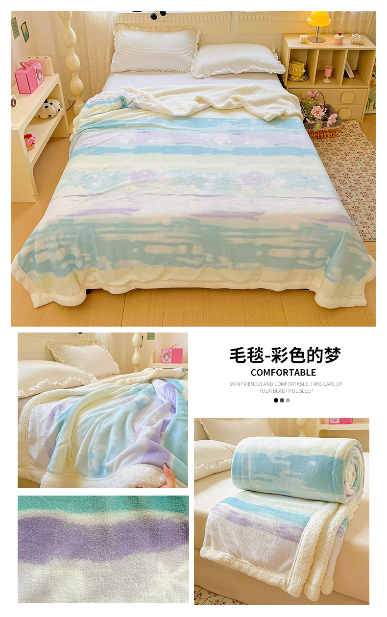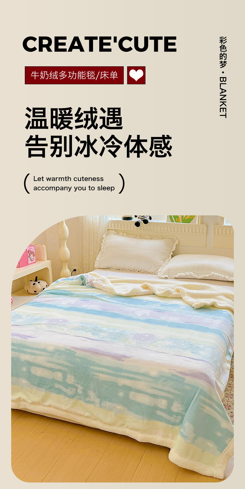 商品名称:名兮 2025新款秋冬高克重牛奶绒羊羔绒多功能盖毯 毛毯-彩色的梦
