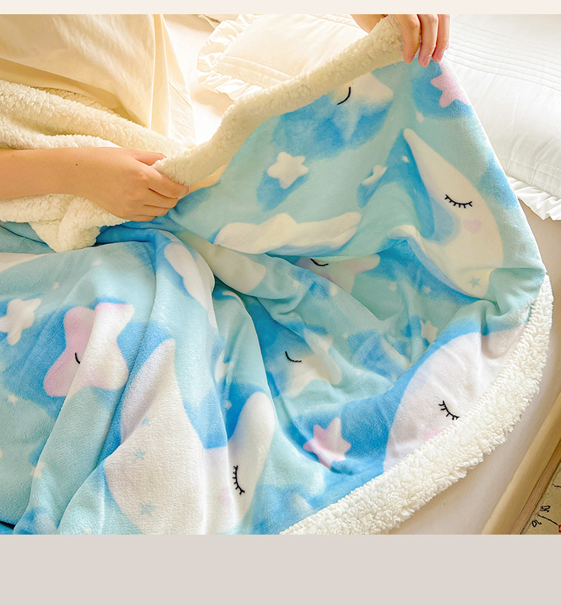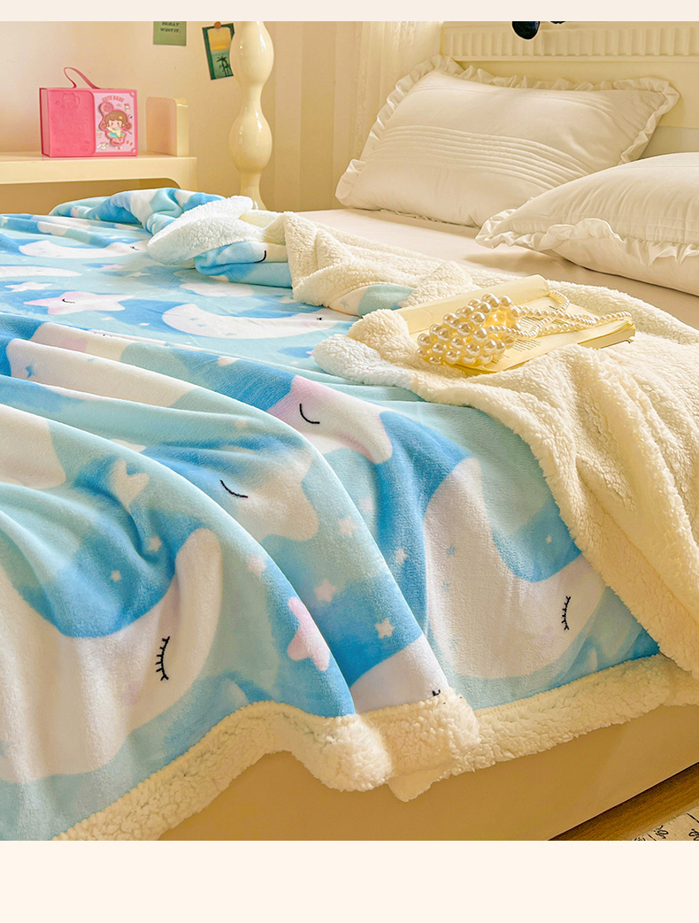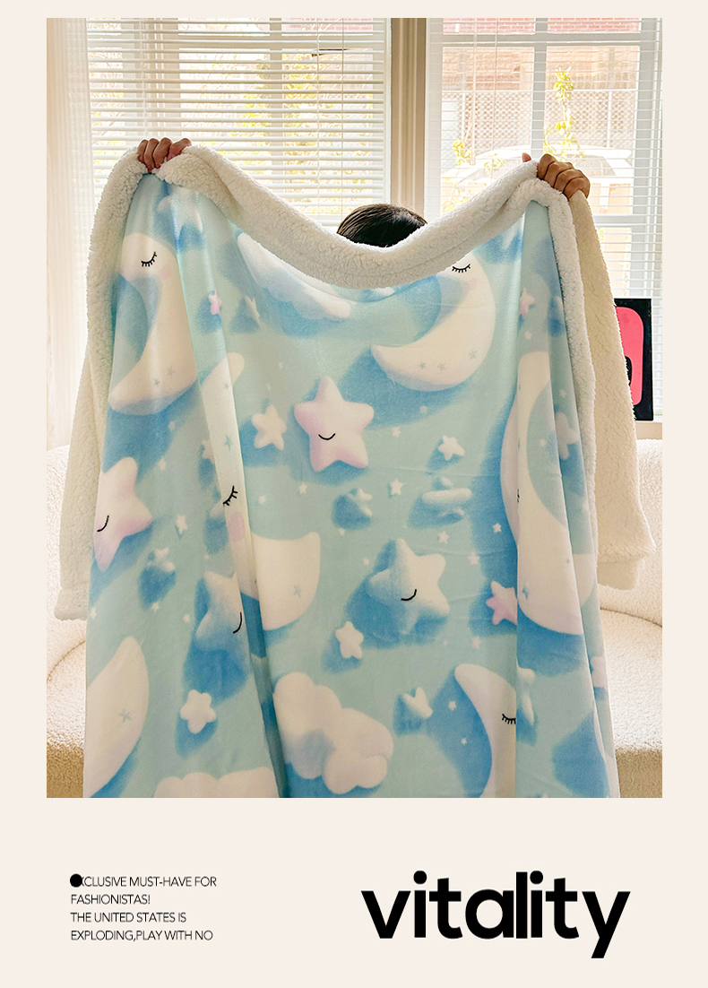 名兮 2025新款秋冬高克重牛奶绒羊羔绒多功能盖毯 毛毯-星月传奇