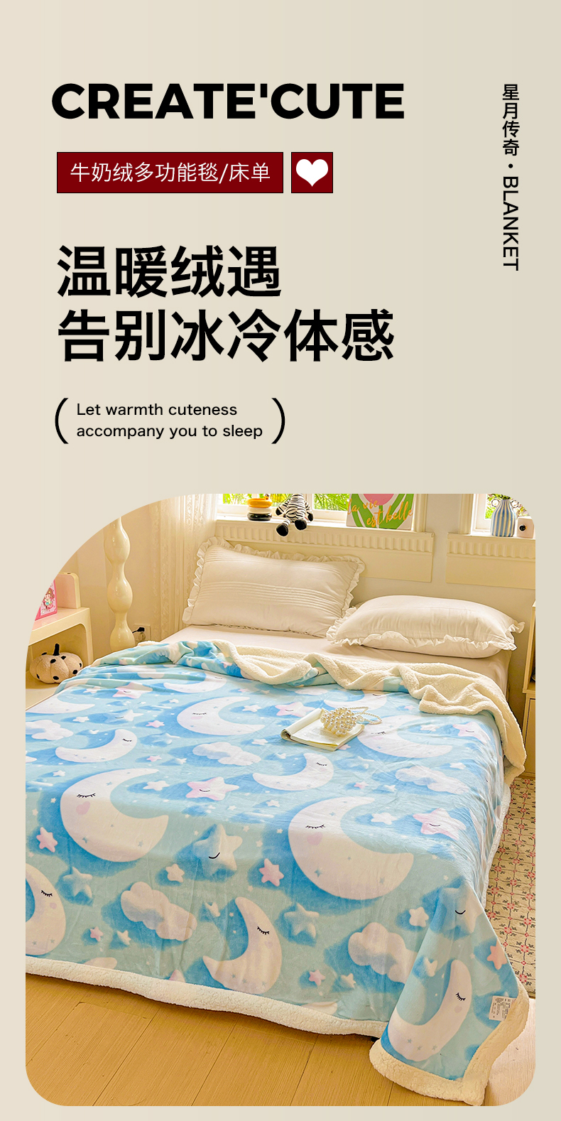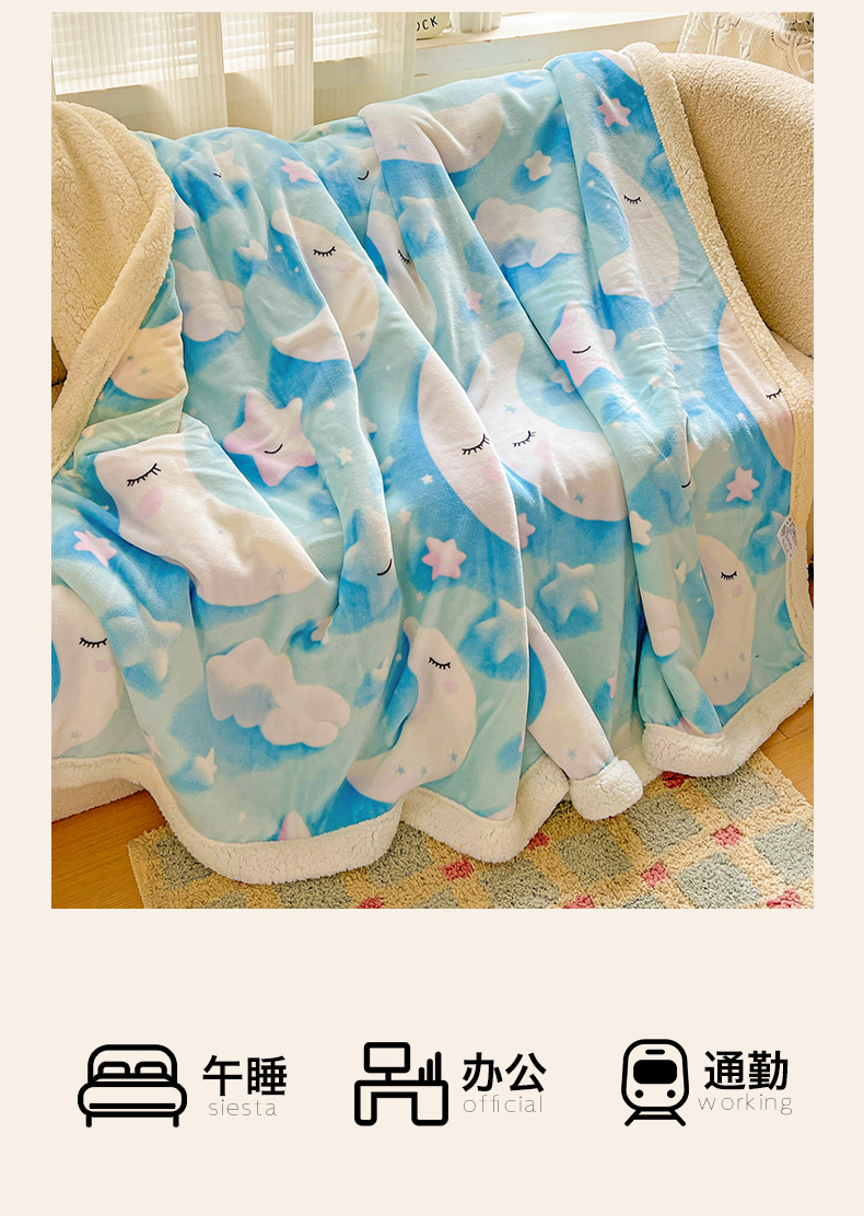 商品名称:名兮 2025新款秋冬高克重牛奶绒羊羔绒多功能盖毯 毛毯-星月传奇