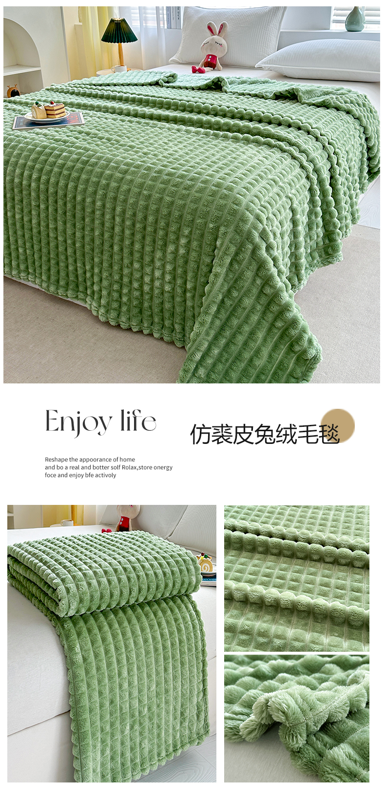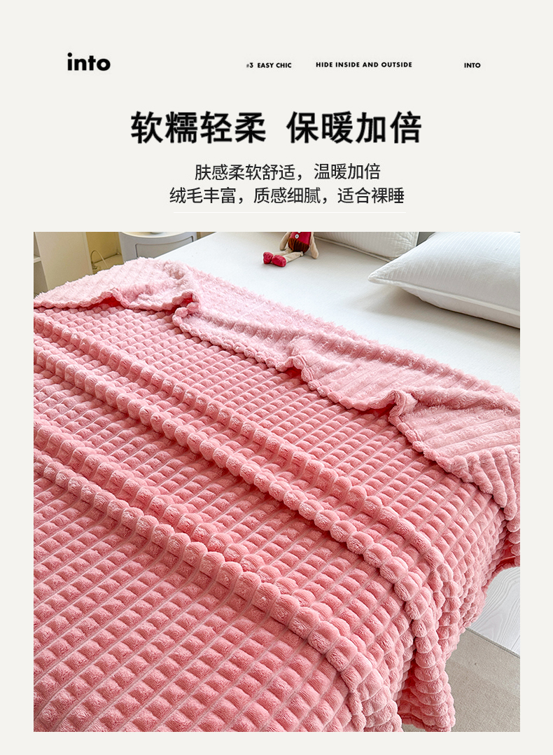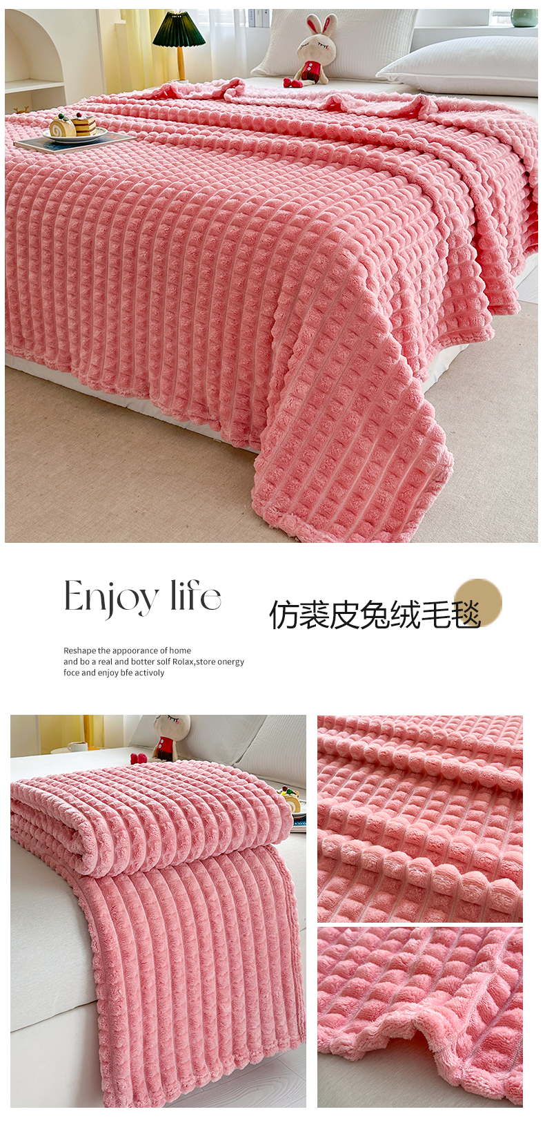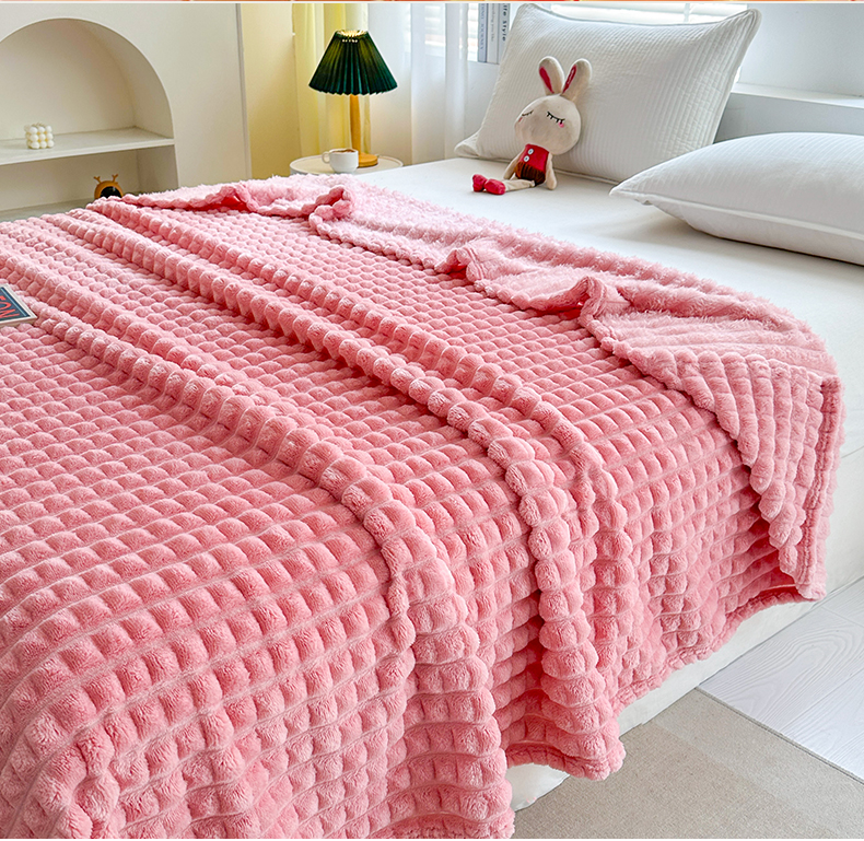 商品名称:栩裕纺织 2025春夏新款仿裘皮格子抽条毛毯-卷边款 深灰
