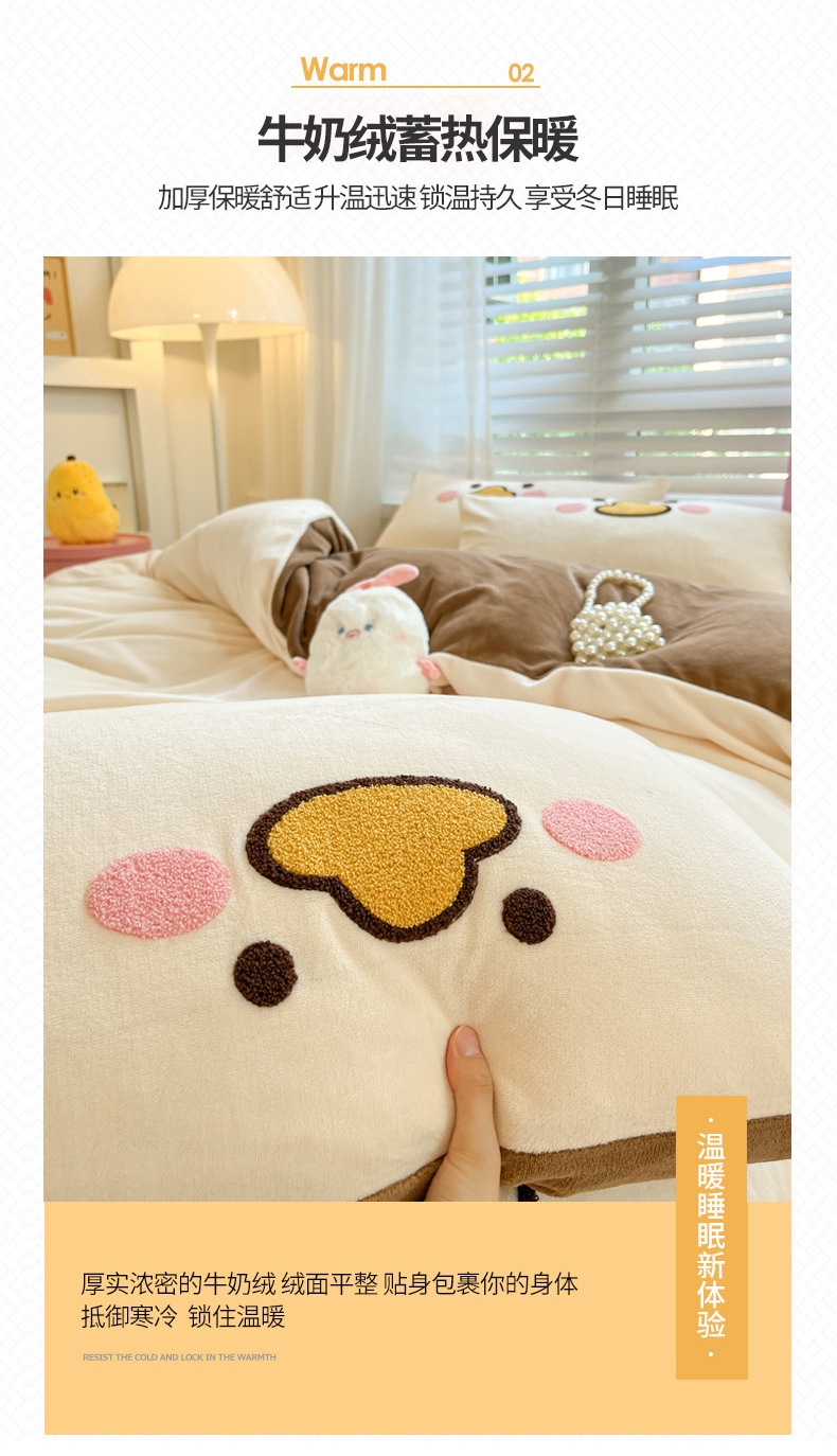 当前位置: 91家纺网 > 商品网购 > 床品套件 > 四件套 > 牛奶绒四件套 > 丽涵家纺 2025秋冬新款全工艺牛奶绒大版毛巾绣四件套 熊猫屋-奶白