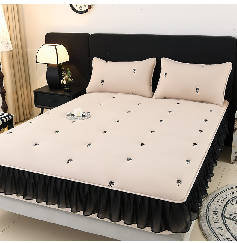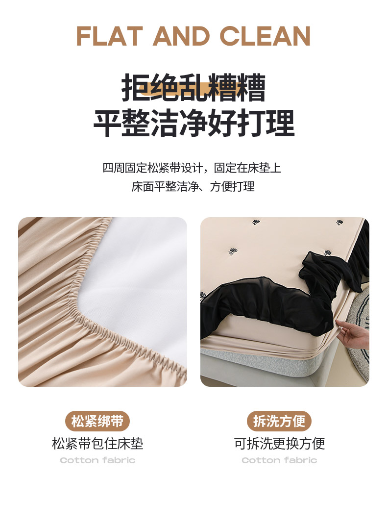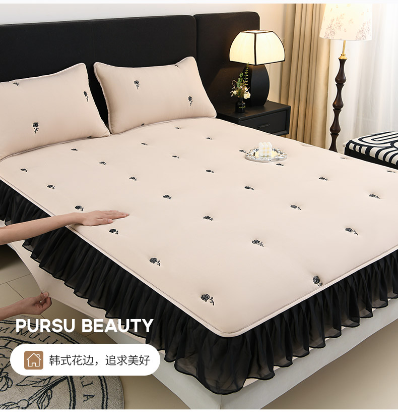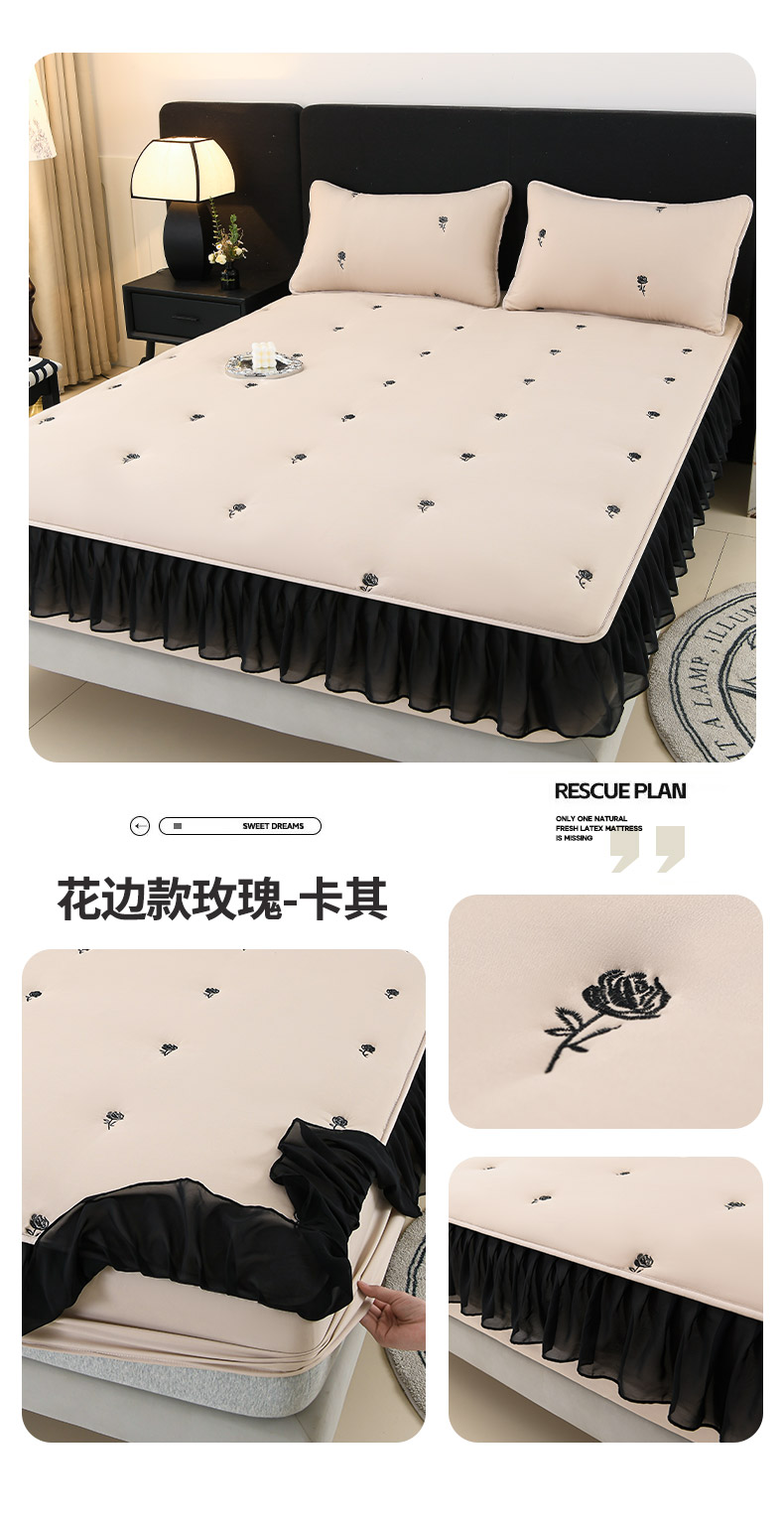 商品名称:推推家纺 2025新款A类水洗棉花边床笠单品床笠床笠单件 花边款玫瑰-卡其