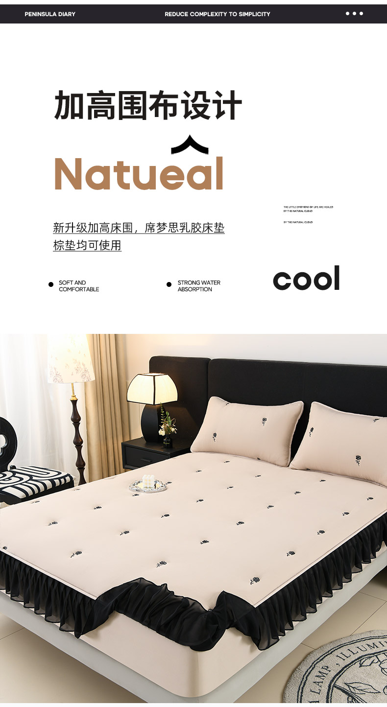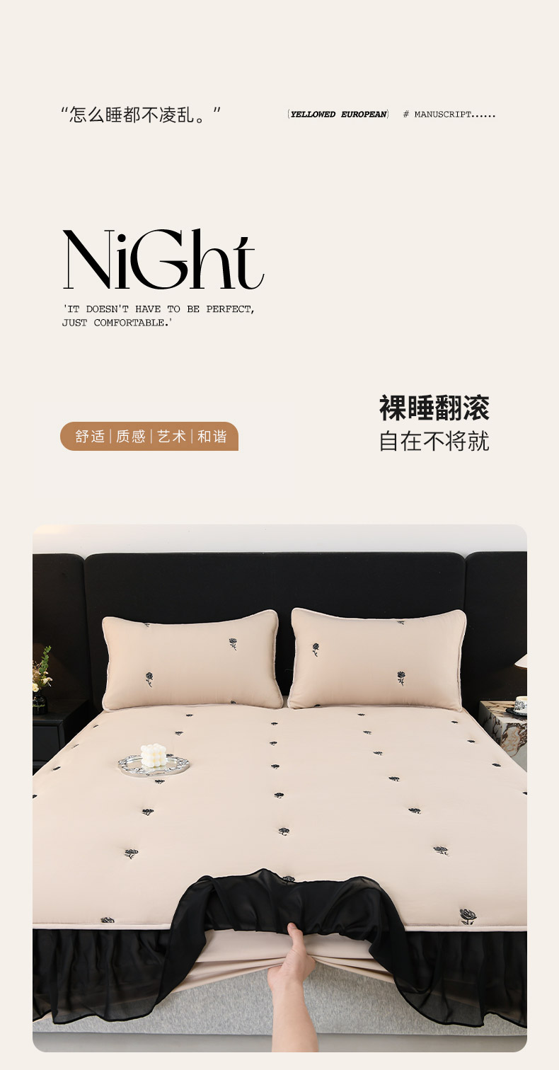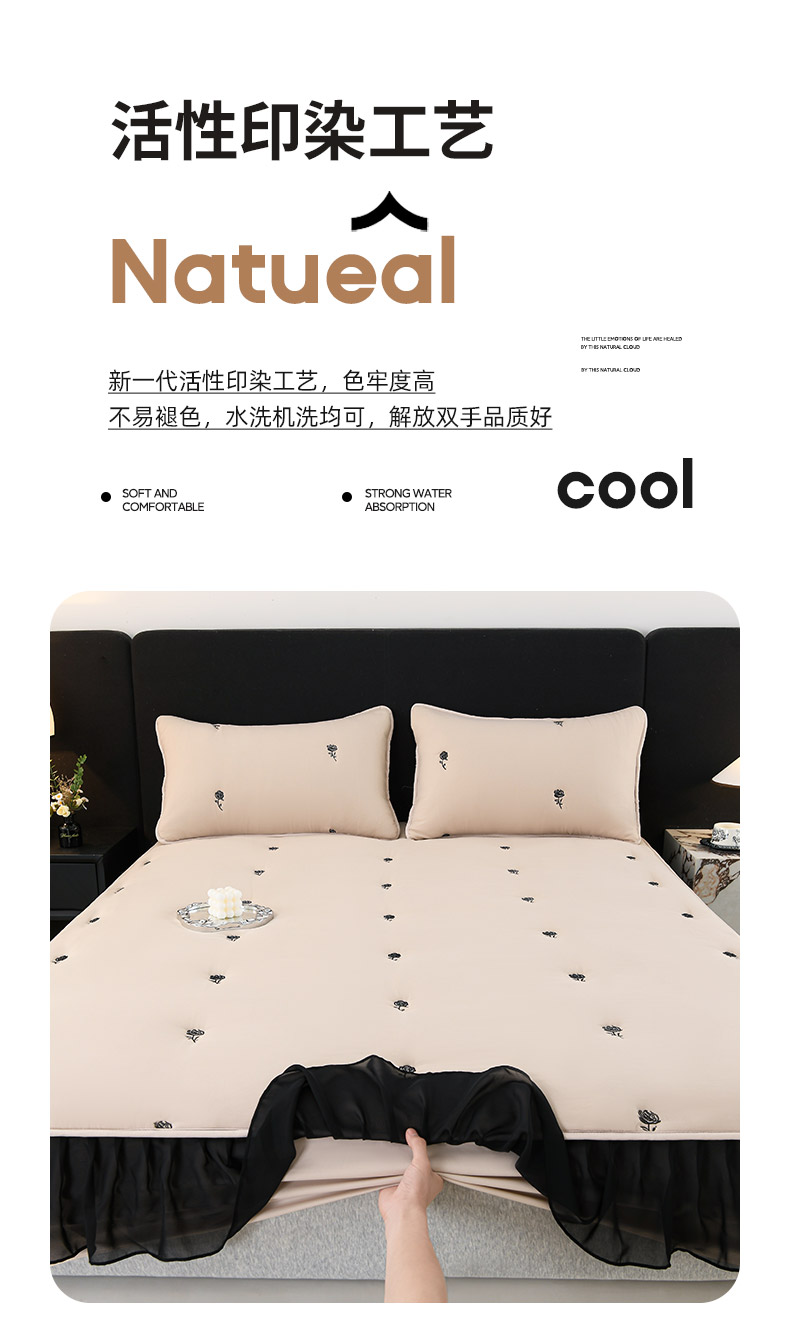 商品名称:推推家纺 2025新款A类水洗棉花边床笠单品床笠床笠单件 花边款玫瑰-卡其
