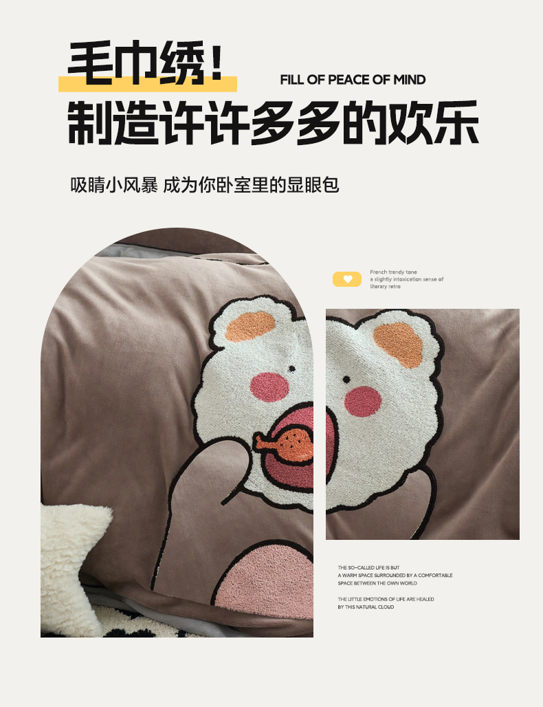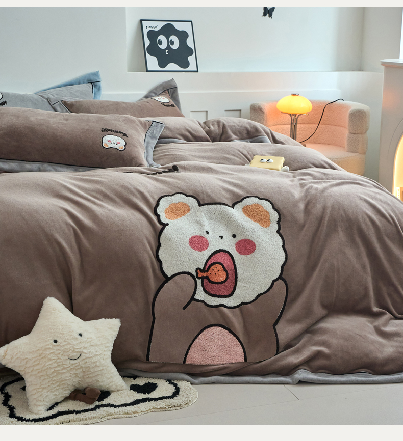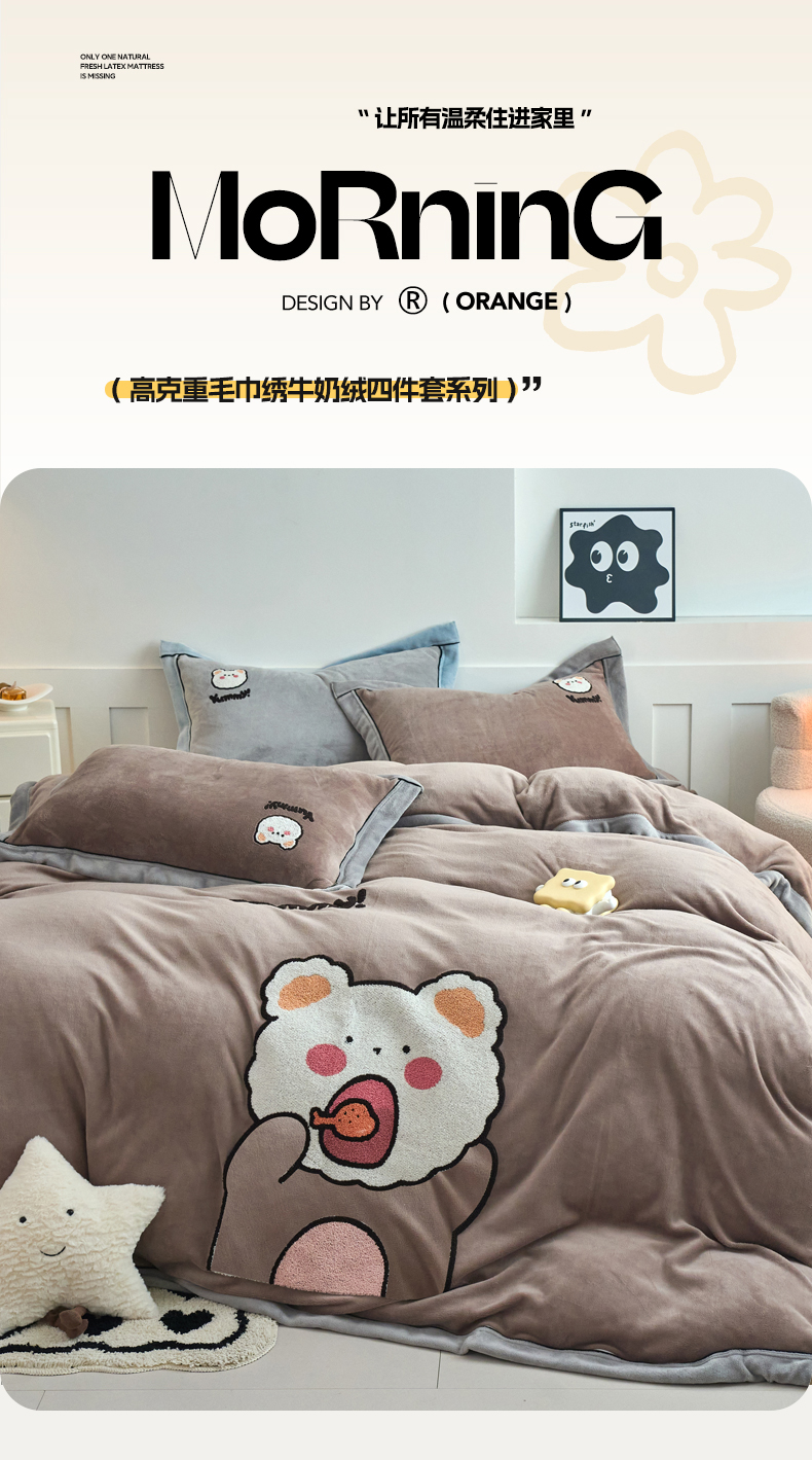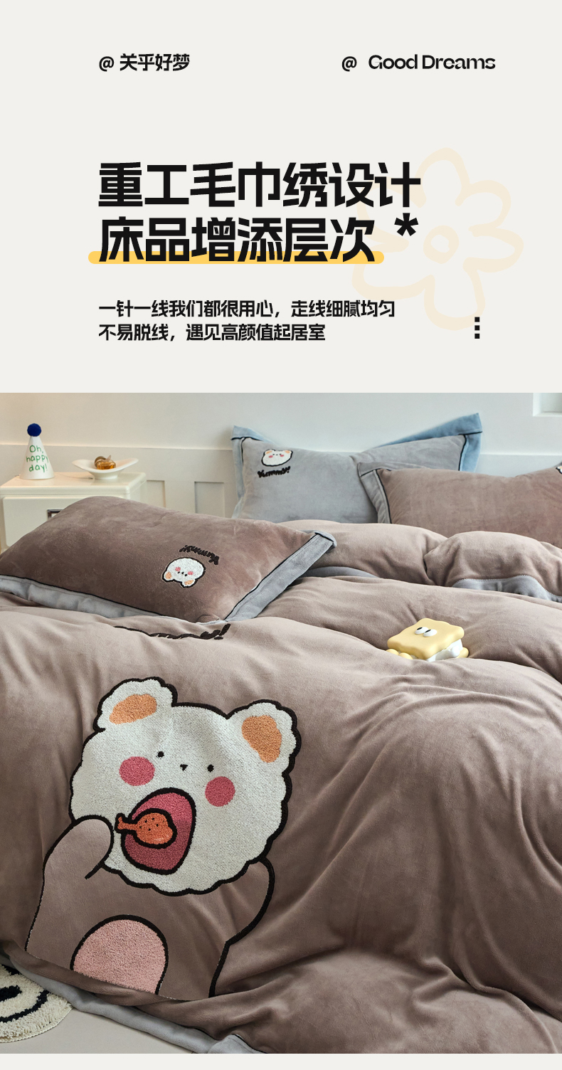 当前位置: 91家纺网 > 商品网购 > 床品套件 > 四件套 > 牛奶绒四件套 > 兰紫橙家纺 2025新款亲肤舒适毛巾绣牛奶绒四件套 小熊-摩卡棕