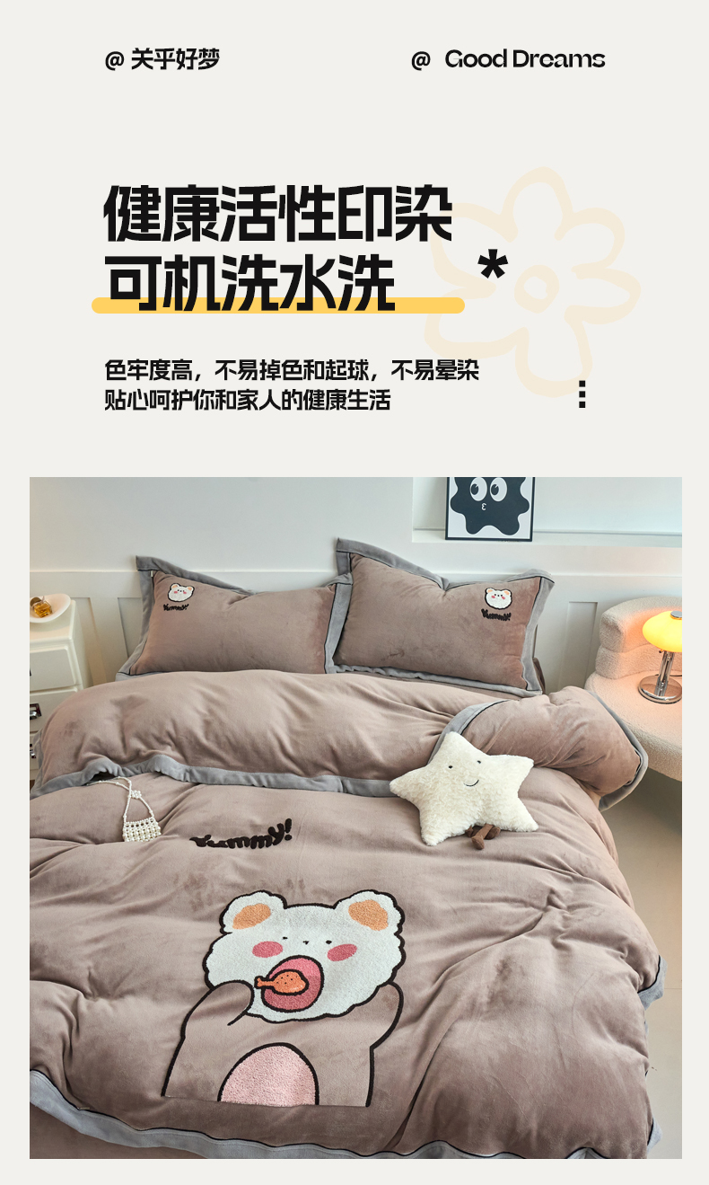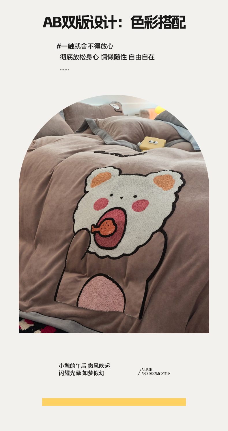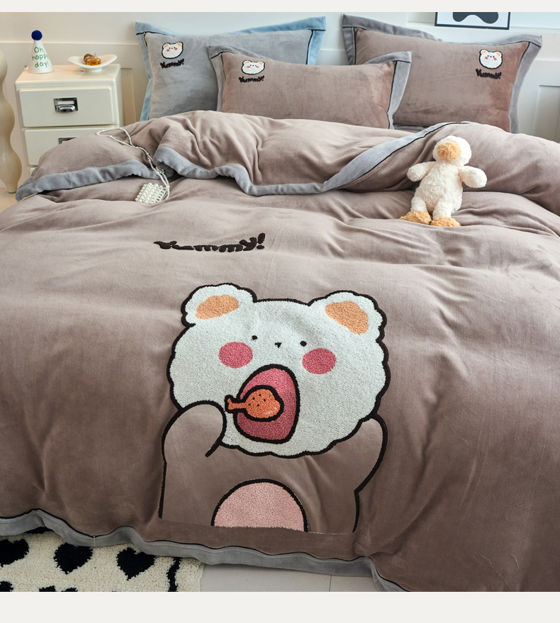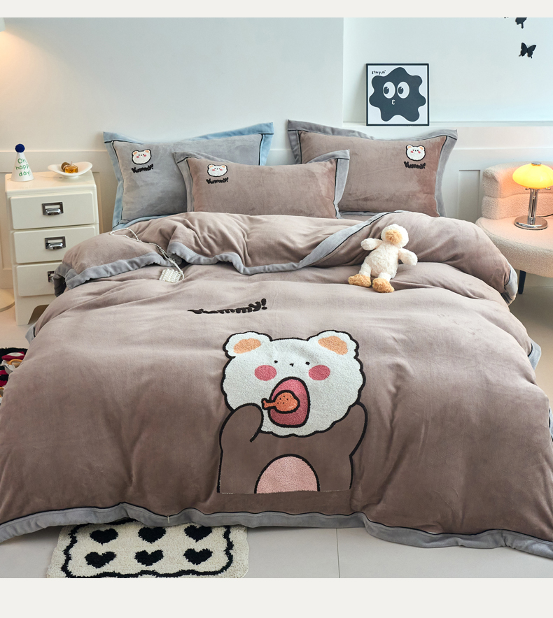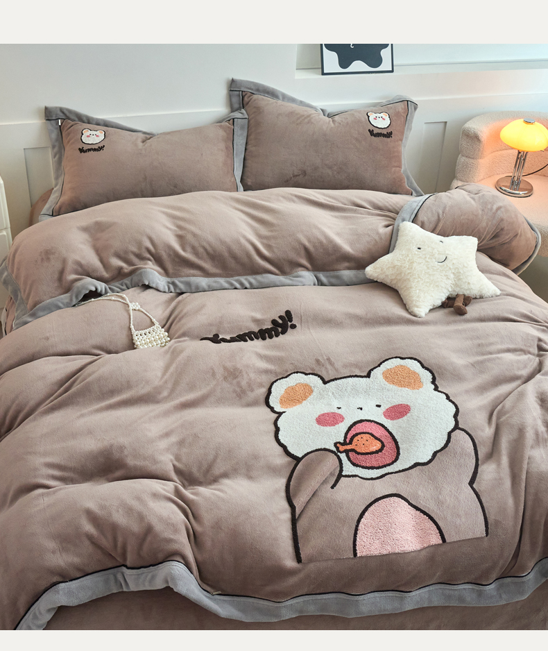当前位置: 91家纺网 > 商品网购 > 床品套件 > 四件套 > 牛奶绒四件套 > 兰紫橙家纺 2025新款亲肤舒适毛巾绣牛奶绒四件套 小熊-摩卡棕