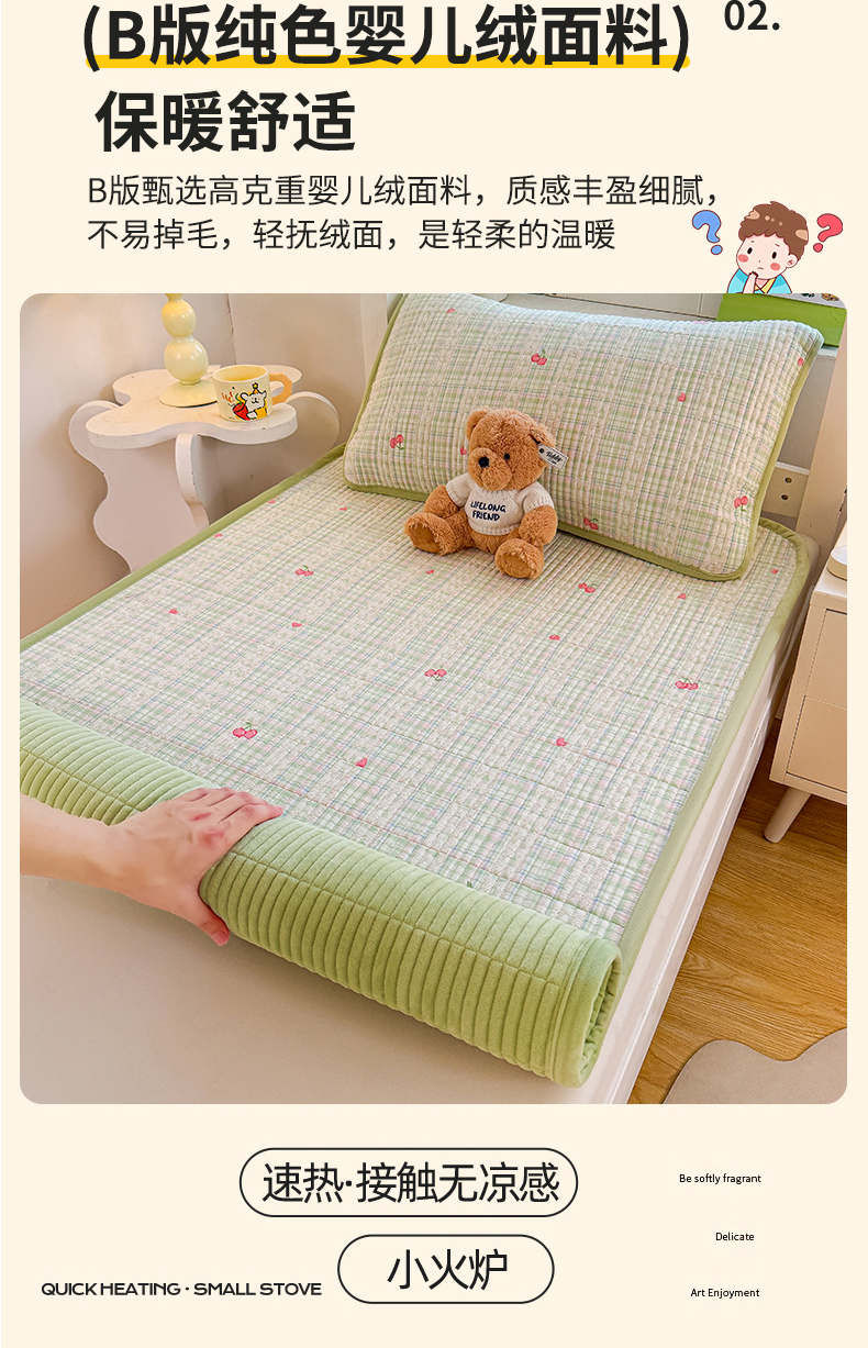 • 91家纺网 家纺一手货源 找家纺 梵朴 2025新款A类棉加绒一面纯棉一面宝宝婴儿牛奶绒双面可用床盖学生宿舍床垫炕盖-学生床图 薄荷糖樱桃