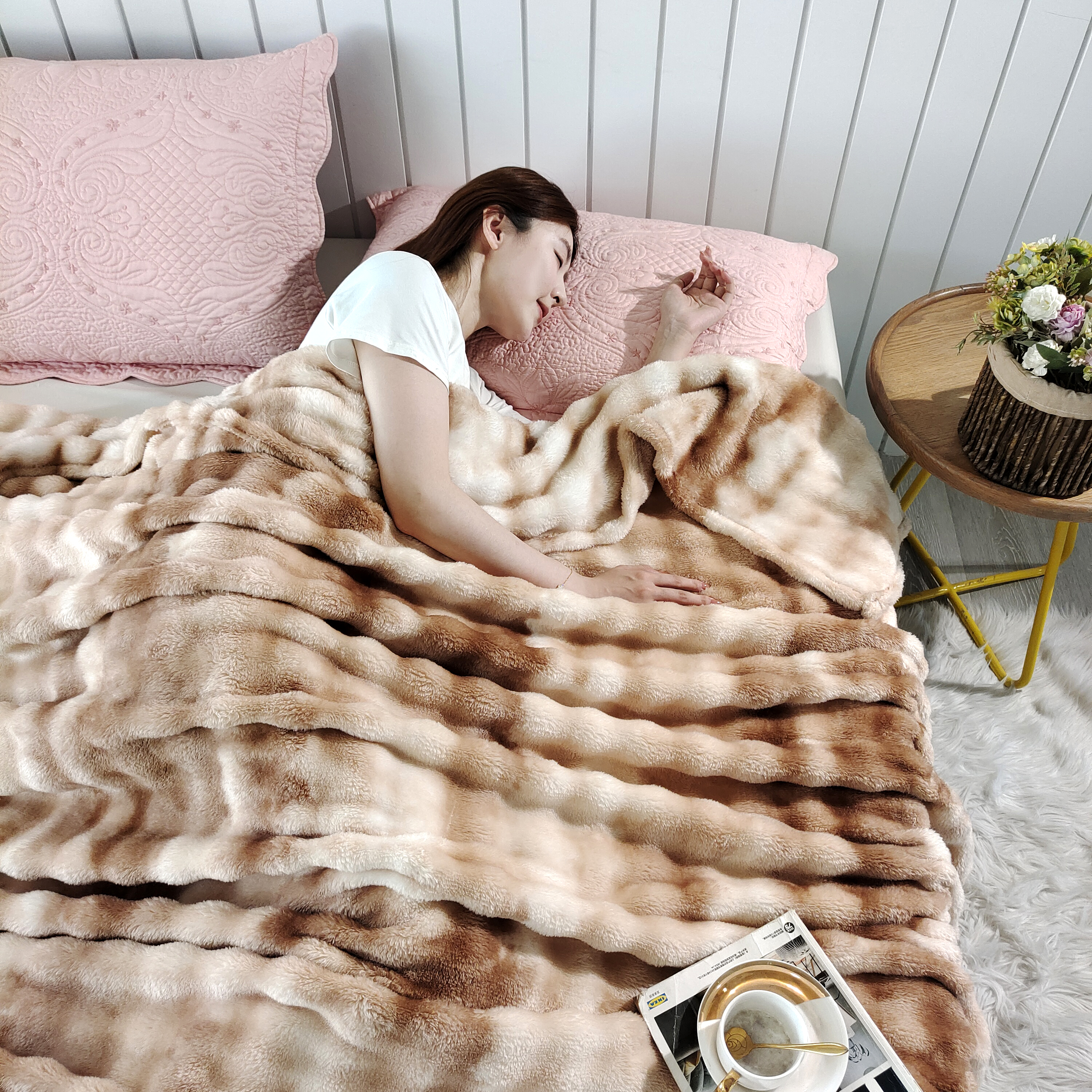 (总)安琪家纺 2025新款280克直播爆品兔毛绒高克重多功能抽条毛毯盖毯午睡毯跨境外贸,果绿,深灰,酒红,粉色,咖色,奶白,浅灰,紫色,藏青