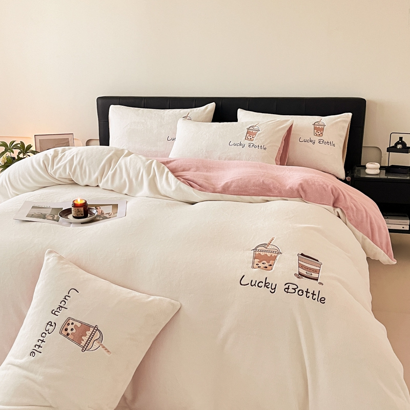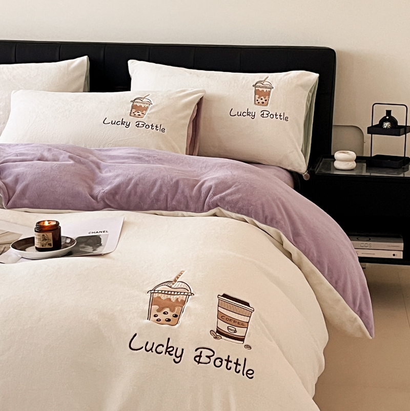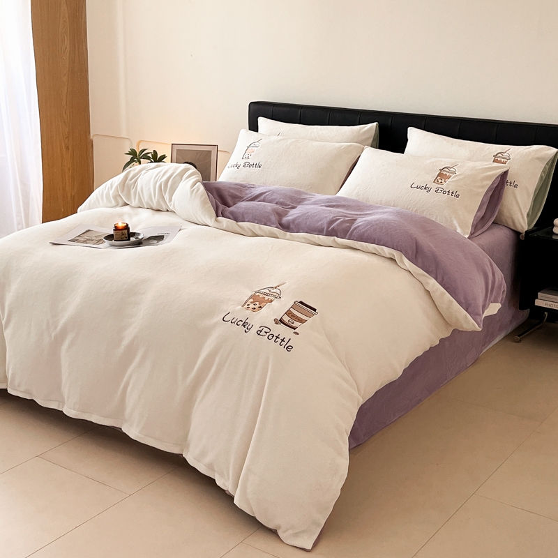 当前位置: 91家纺网 > 商品网购 > 床品套件 > 四件套 > 牛奶绒四件套 > ONE TWO ONE 121 2025新品牛奶绒纯色刺绣四件套-lucky刺绣系列场景二 Lucky-雾兰