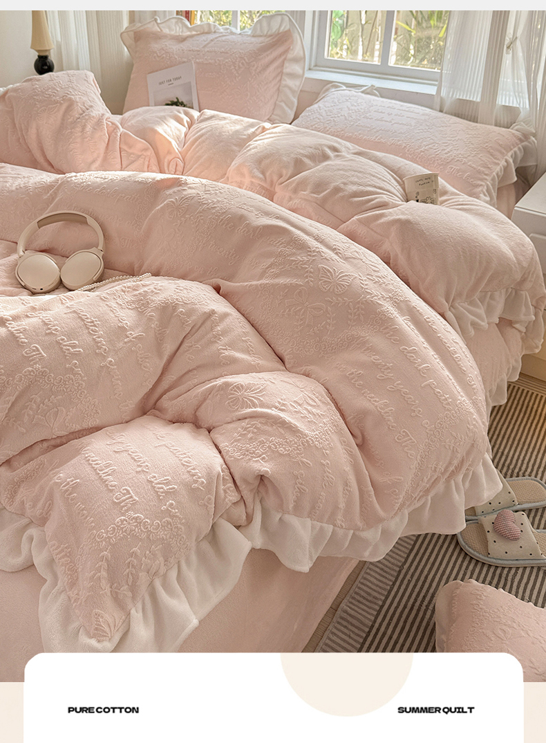 当前位置: 91家纺网 > 商品网购 > 床品套件 > 四件套 > 牛奶绒四件套 > 耀悦家纺 2025新款A类全消光牛奶绒花边款四件套少女心三件套-浪漫法式 蝶恋花-紫-花边款