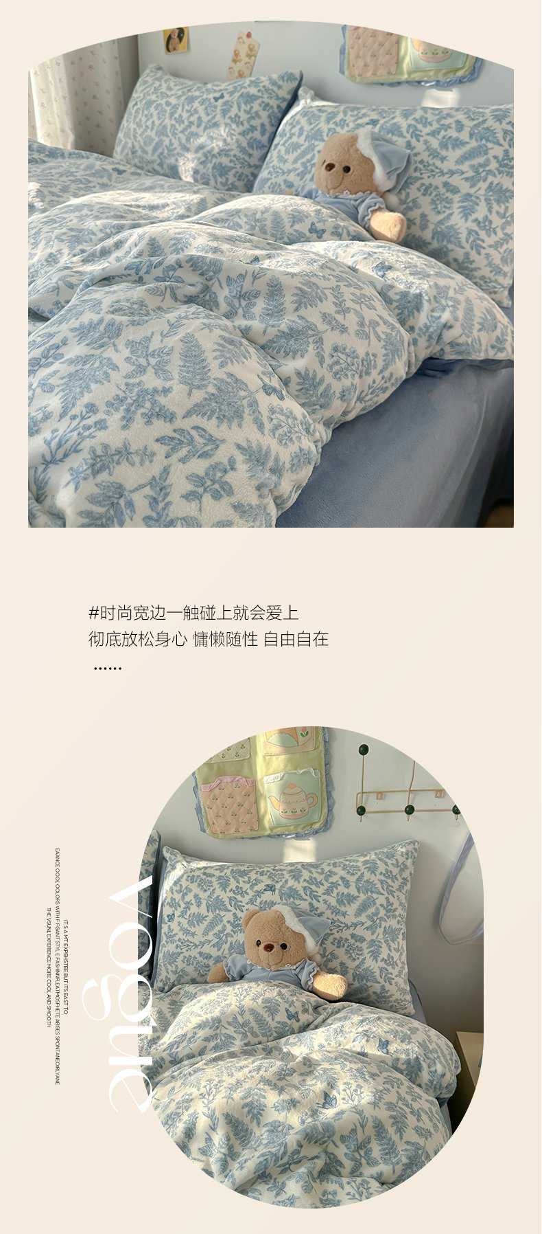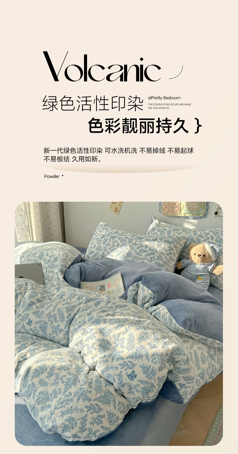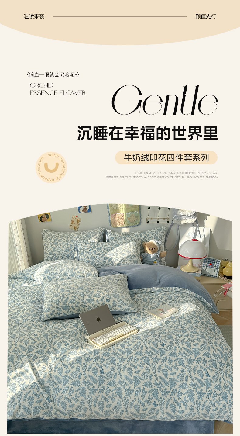 韩巢家纺 2025新款高克重印花牛奶绒床品四件套 田园小花,田园小花