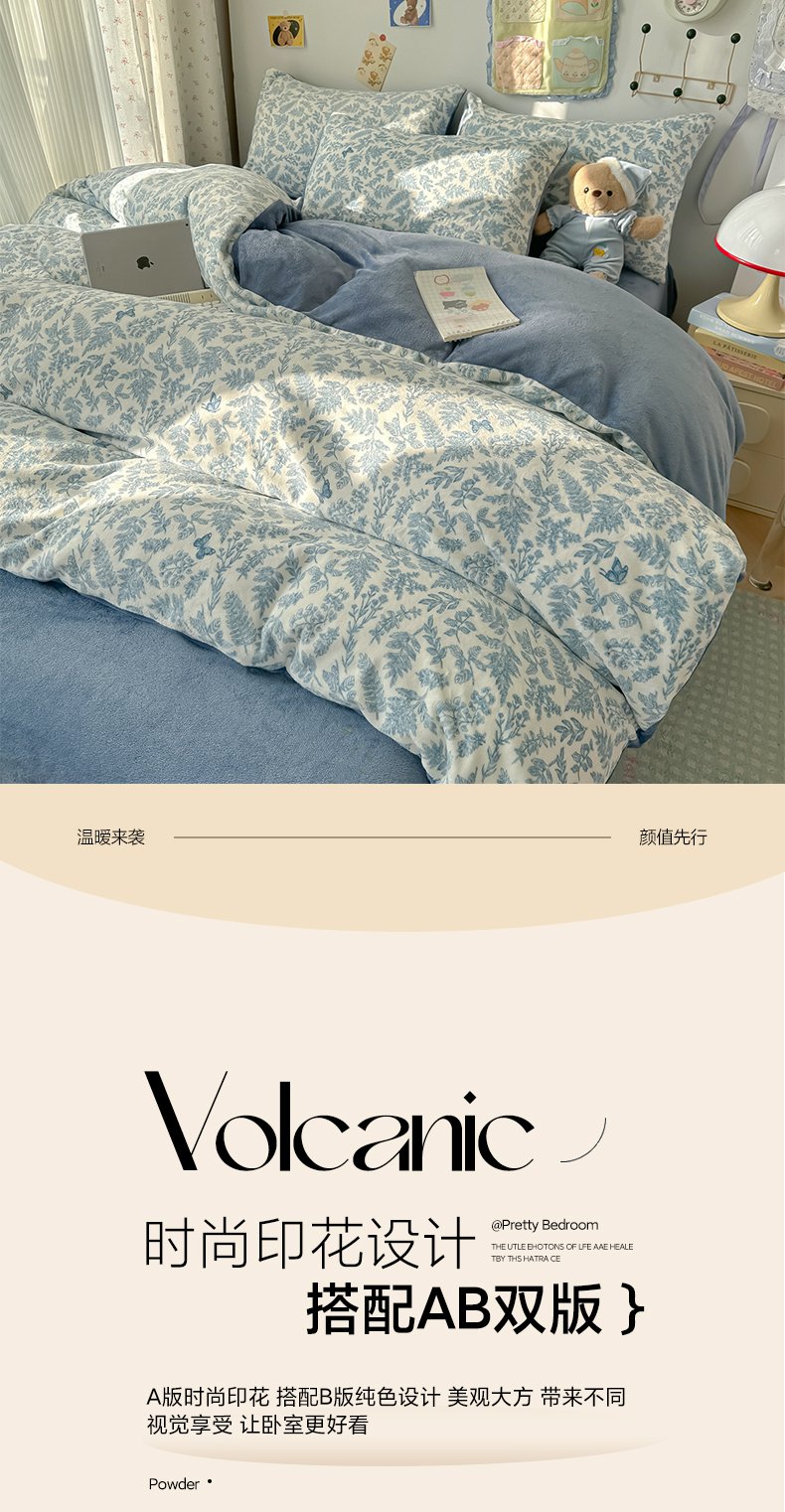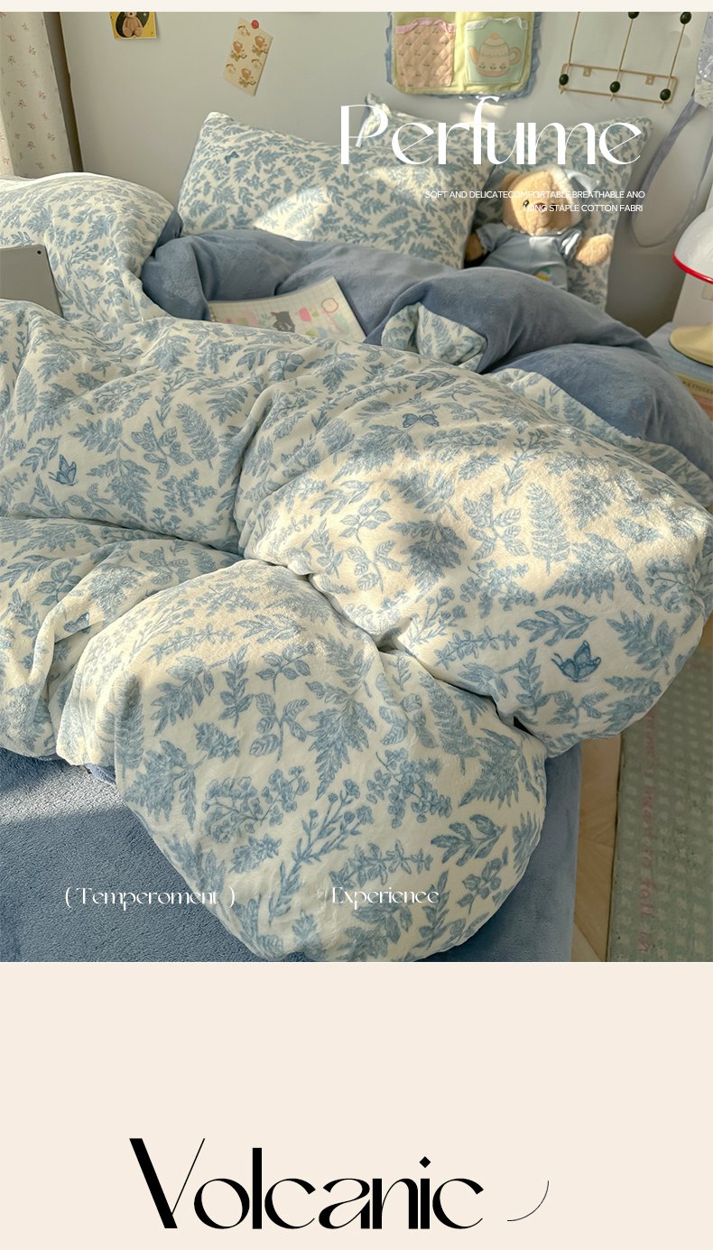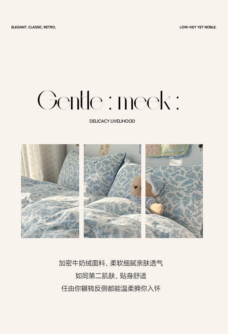 韩巢家纺 2025新款高克重印花牛奶绒床品四件套 田园小花,田园小花