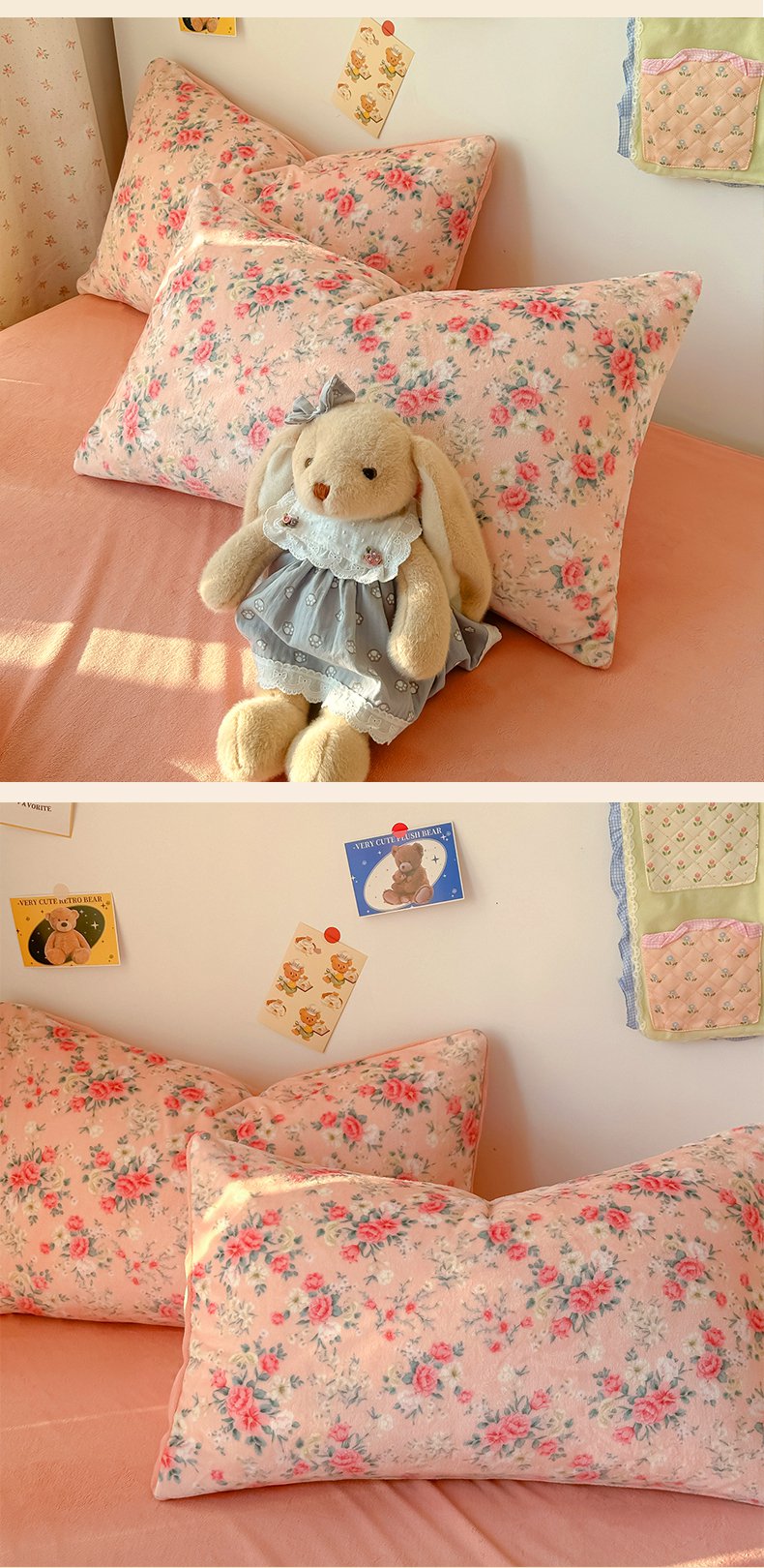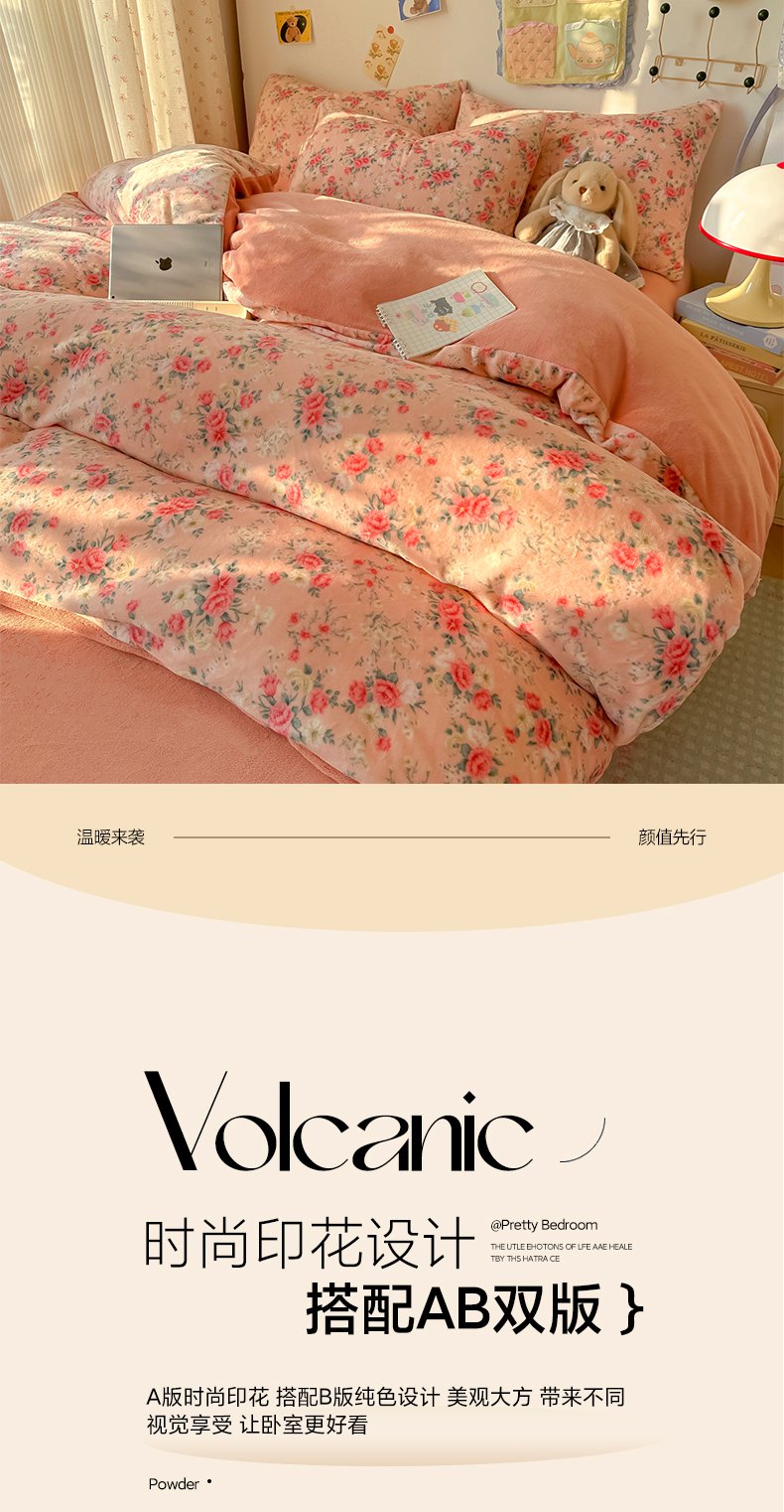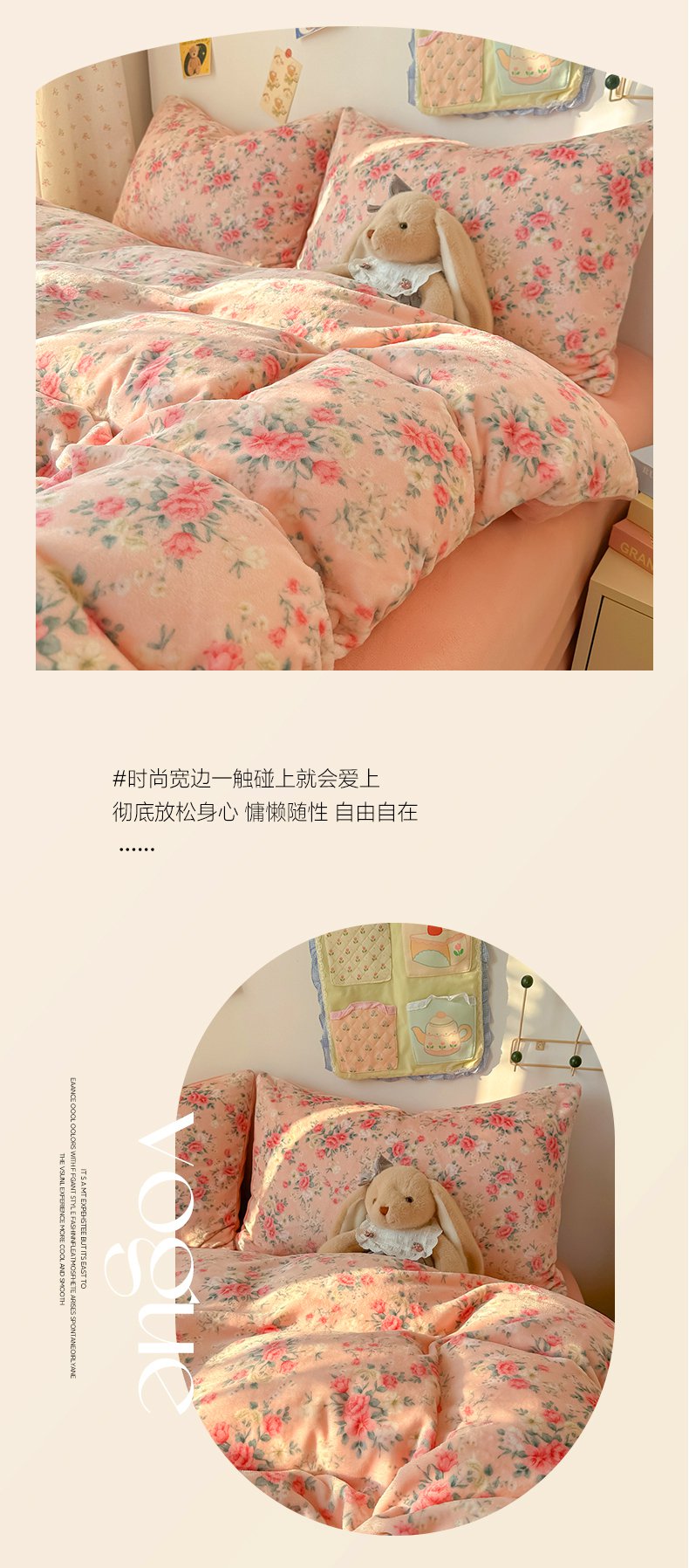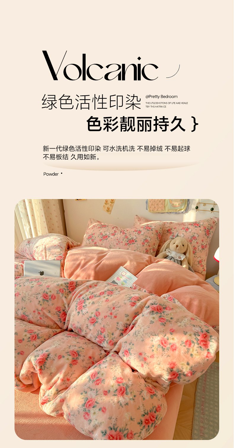 韩巢家纺 2025新款高克重印花牛奶绒床品四件套 田园小花,田园小花