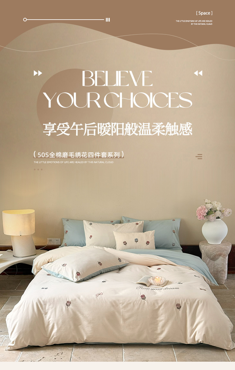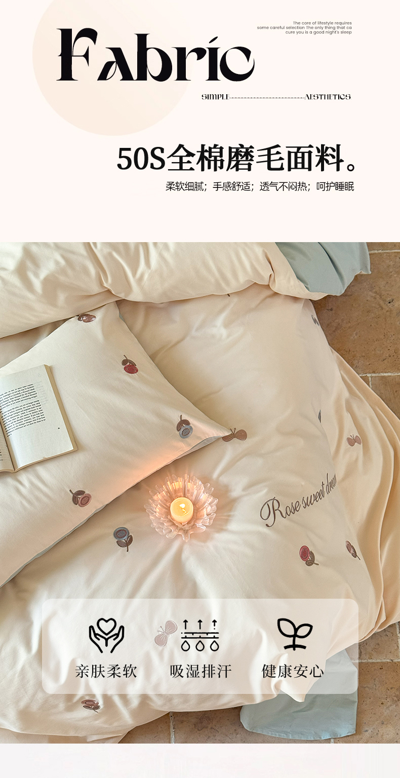 当前位置: 91家纺网 > 商品网购 > 床品套件 > 四件套 > 普通磨毛四件套 > FORTWO家纺原创设计(FOR TWO家纺) 2025新款50支全棉磨毛绣花四件套-小清新 奶油蔷薇