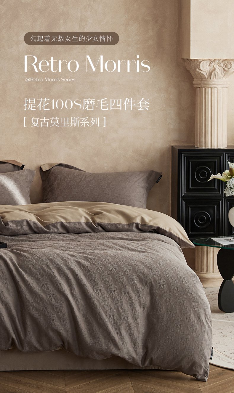 当前位置: 91家纺网 > 商品网购 > 床品套件 > 四件套 > 普通磨毛四件套 > 风向标家纺 2025新款提花100S磨毛四件套-复古莫里斯系列 莫里斯雏菊-咖