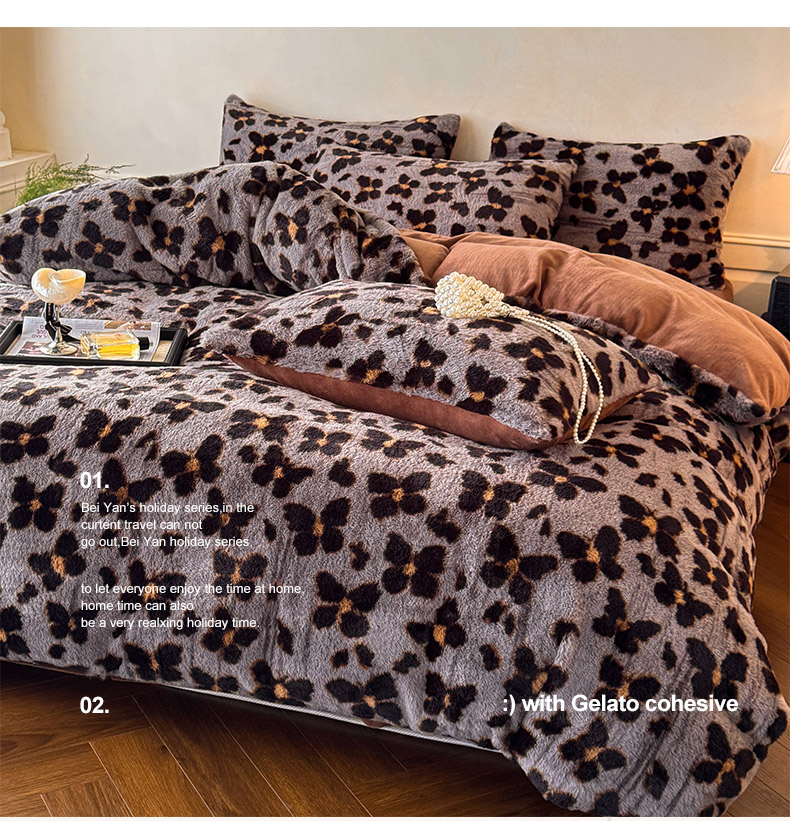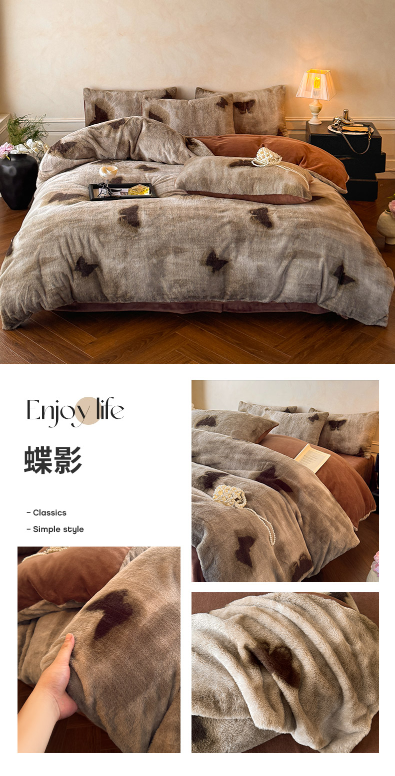 吾诺家居2025新款美拉德260克兔毛四件套数码四件套牛奶绒四件套 蝴蝶豹纹