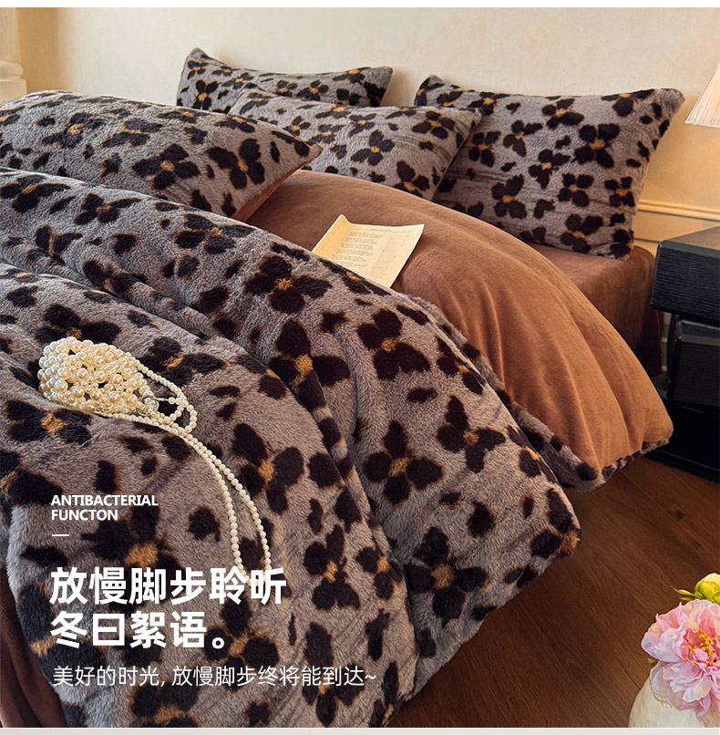 商品名称:吾诺家居2025新款美拉德260克兔毛四件套数码四件套牛奶绒四件套 蝴蝶豹纹
