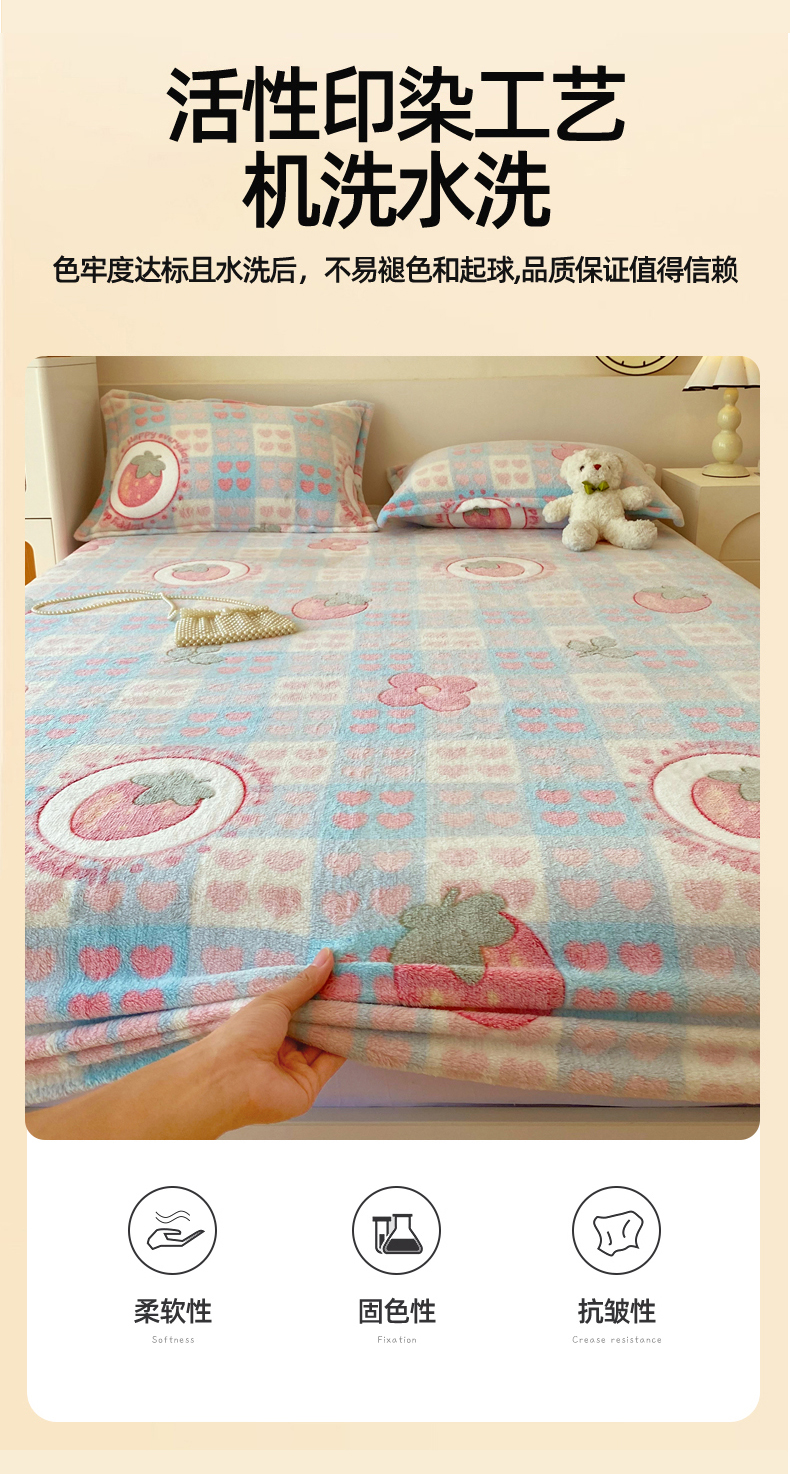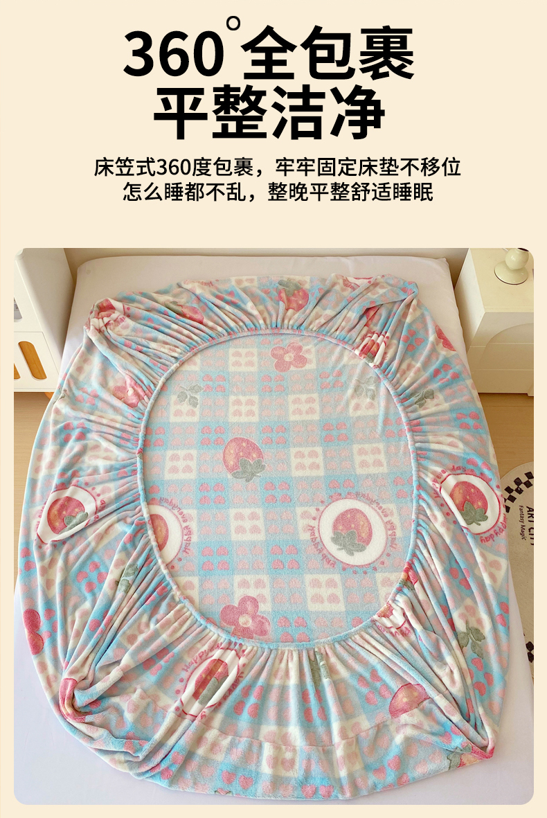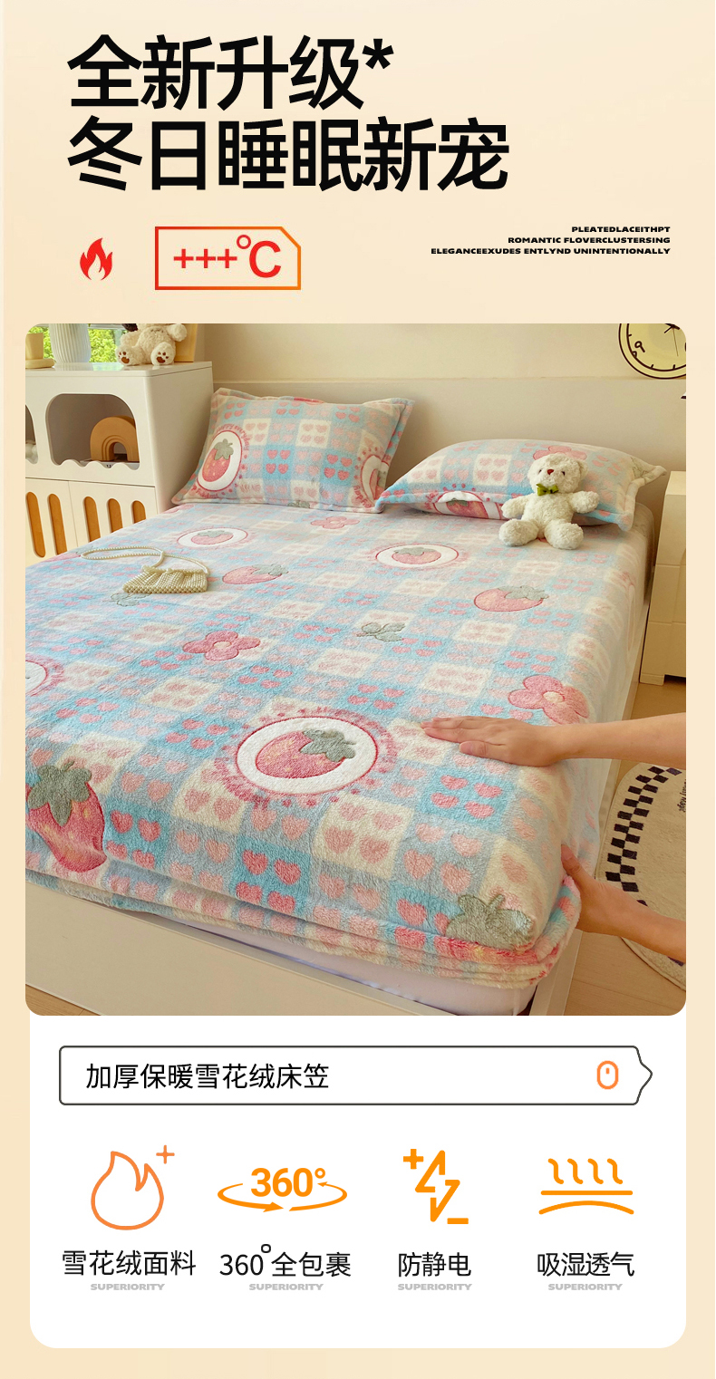 • 91家纺网 家纺一手货源 找家纺 梦尚舒 2025新款180克雪花绒床笠单品床笠床笠单件 草莓心愿