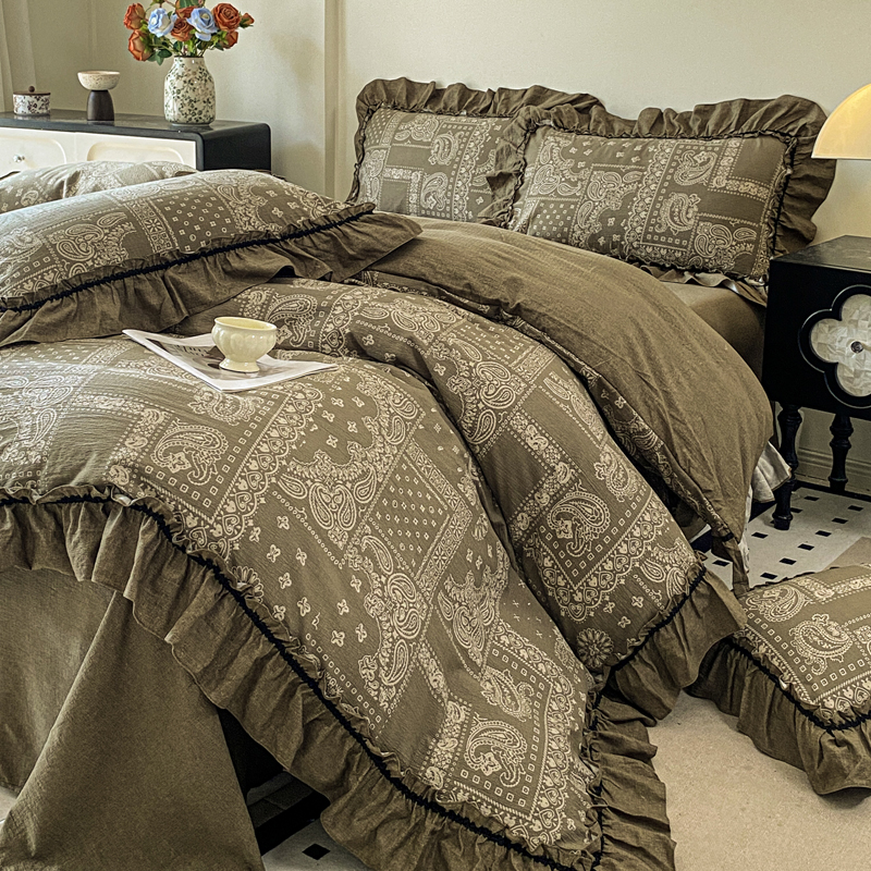 (总)梦纤绒 2026新款高克重法式复古亚麻花边款四件套,雾影,花梦,森屿,时光紫,晚风,雾漫