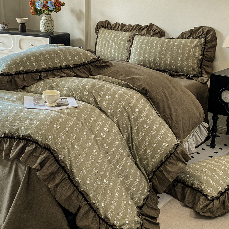 (总)梦纤绒 2025新款云感木棉皱皱双层纱全棉花边四件套,白茶-绿,百福蓝,薄荷微凉,初恋,春风里,春晓,豆蔻,蝴蝶梦,花园兔,可颂,蜡笔画,莱茵河畔,兰黛,山野栀子,素颜,太妃糖,桃花诺,田园拾趣-黄,小黑兔,心动,遇见,芝士奶酪,紫爱心,紫苏,组合图(仅展示)