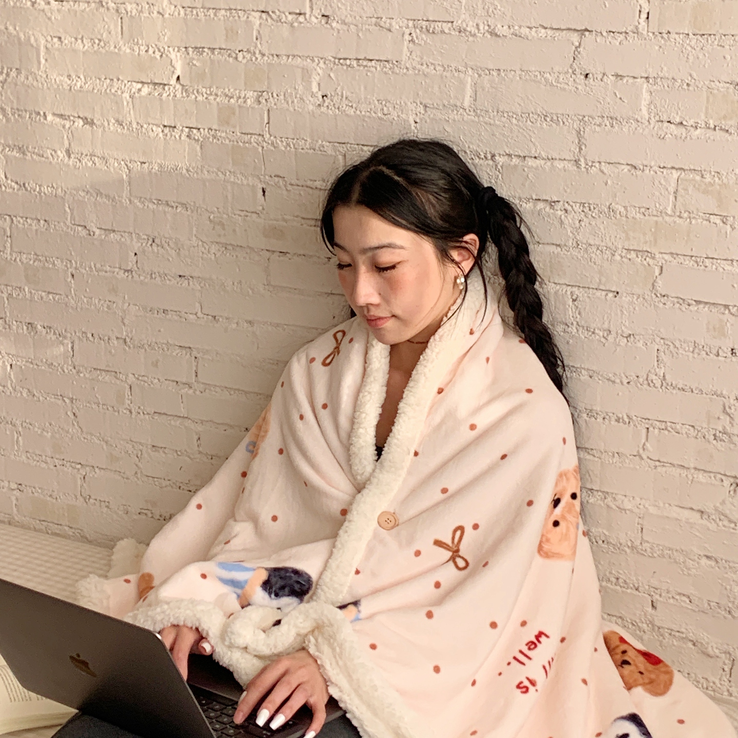 商品名称:桃喜 2025秋冬新款加厚牛奶绒羊羔绒披肩毯 房子小狗(羊羔绒披肩毯)