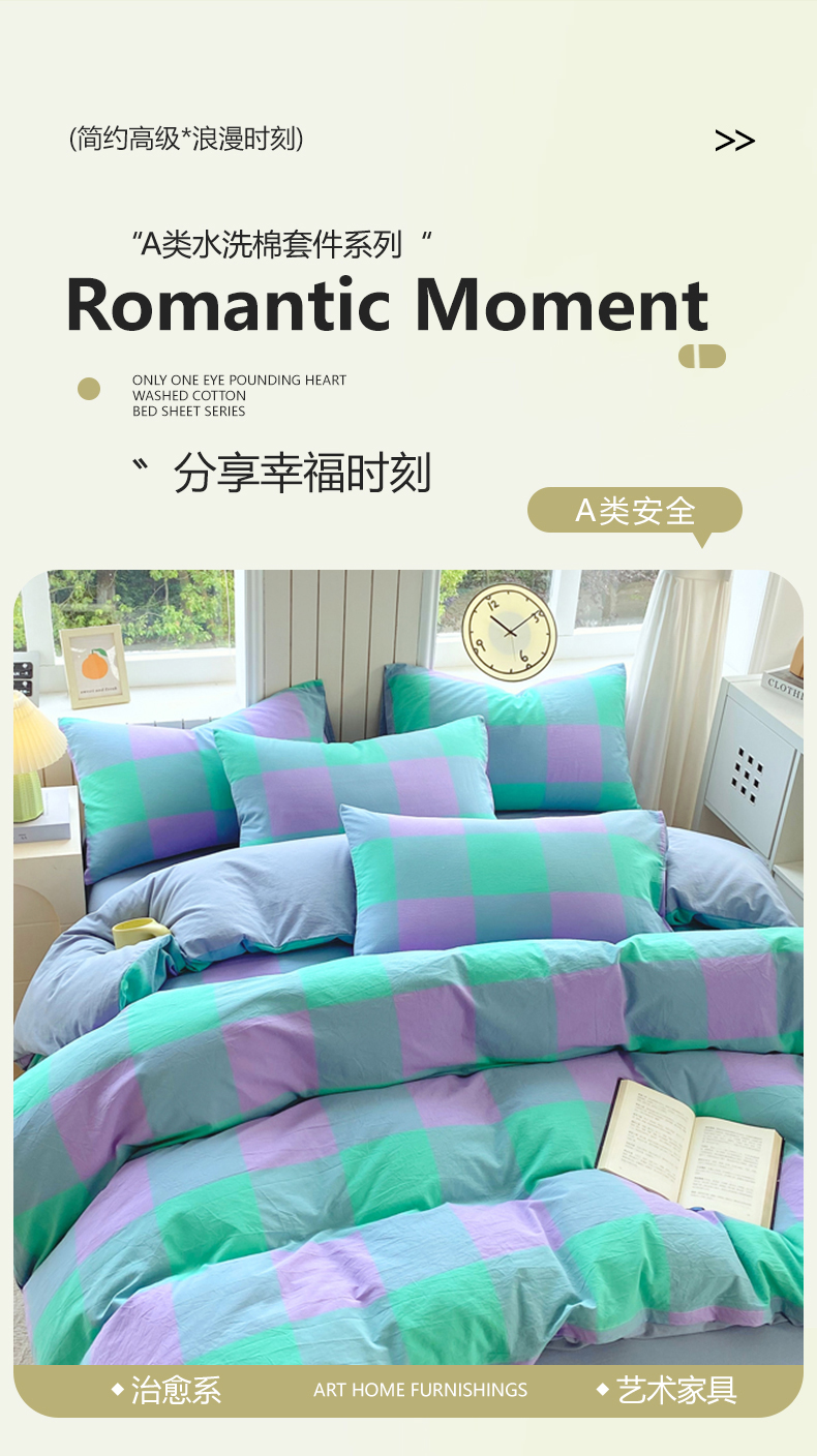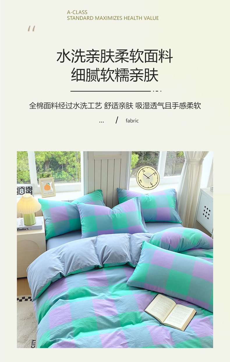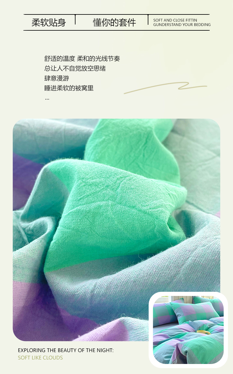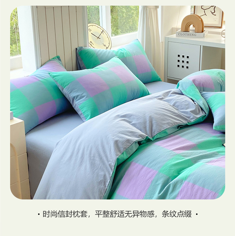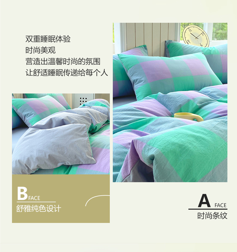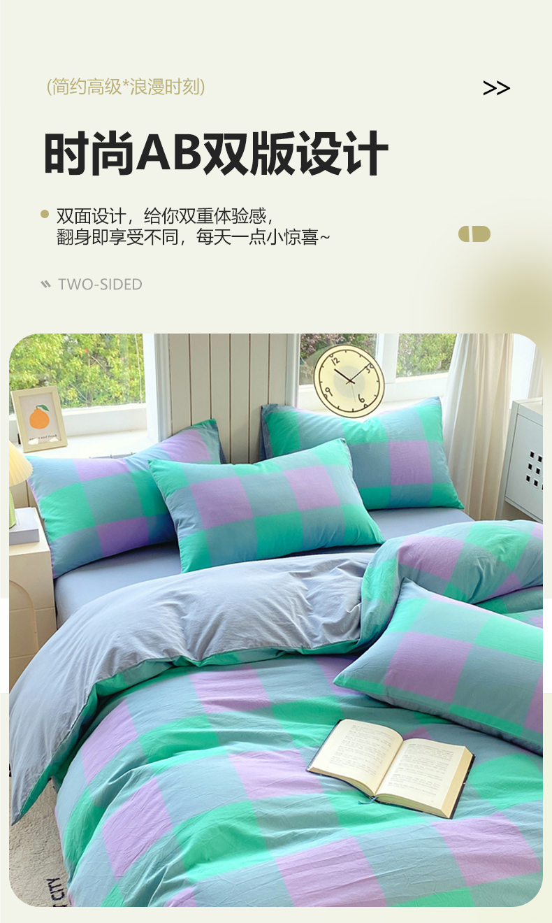 当前位置: 91家纺网 > 商品网购 > 床品套件 > 四件套 > 全棉普通四件套 > 春皖家纺 2025新款全棉纯棉色织AB版水洗棉四件套 胭紫