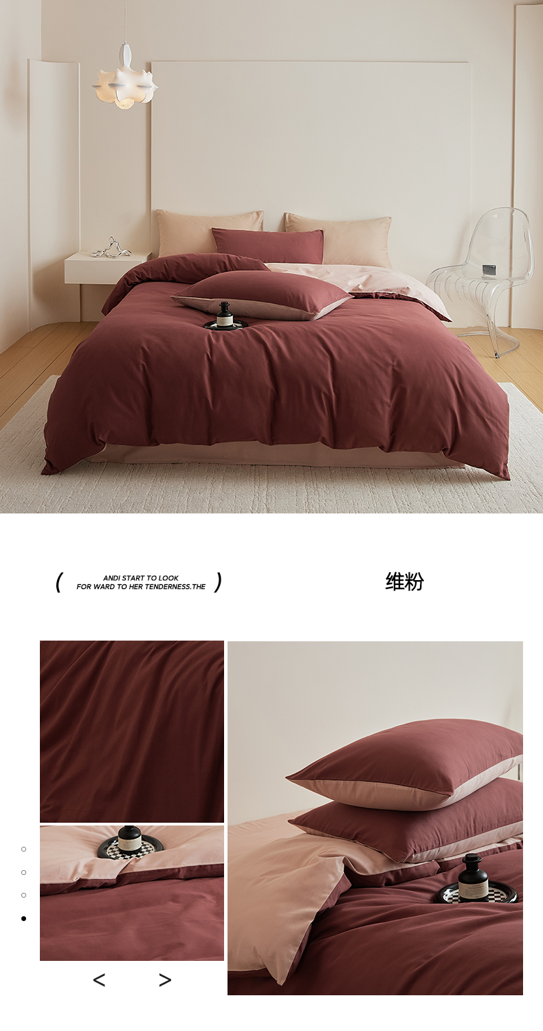 当前位置: 91家纺网 > 商品网购 > 床品套件 > 四件套 > 全棉普通四件套 > 眷恋家纺 2025新款A类全棉贡缎磨毛双拼色四件套 粉恋