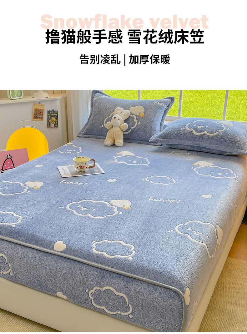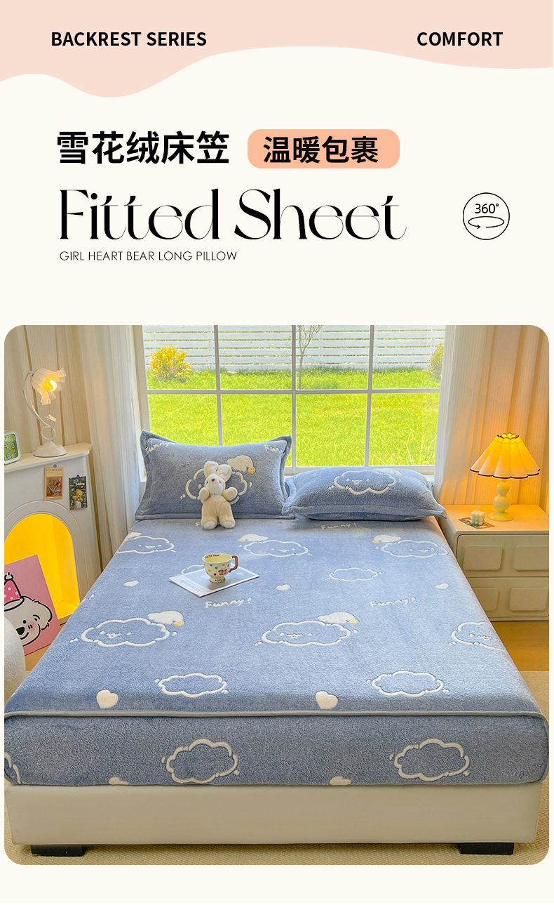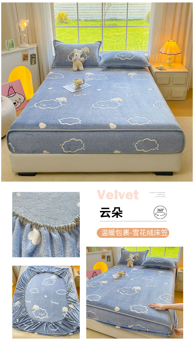 牵梦萦家纺 2025新款雪花绒立体包边床笠 云朵