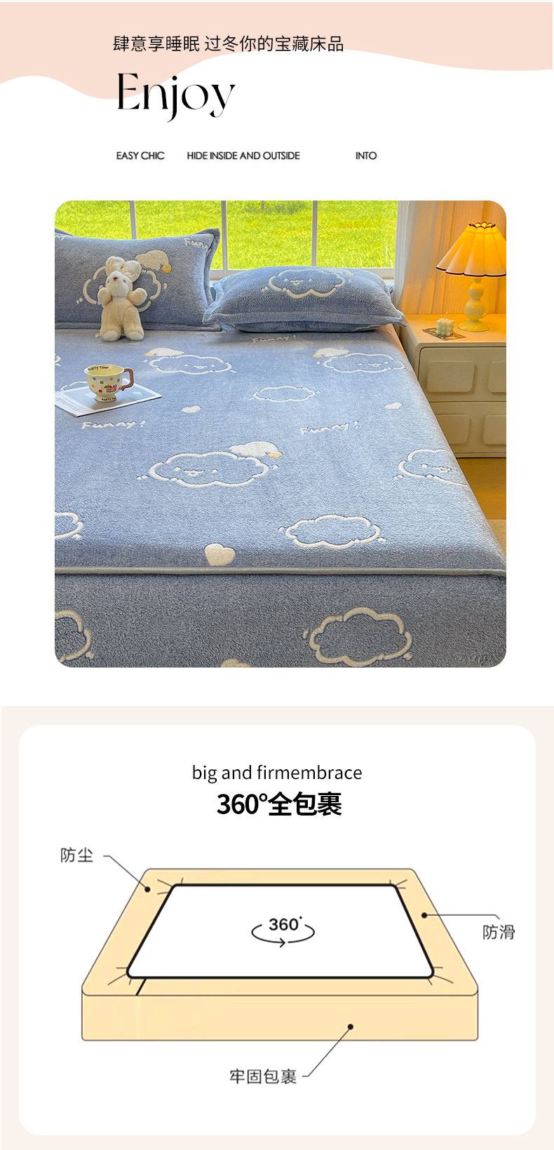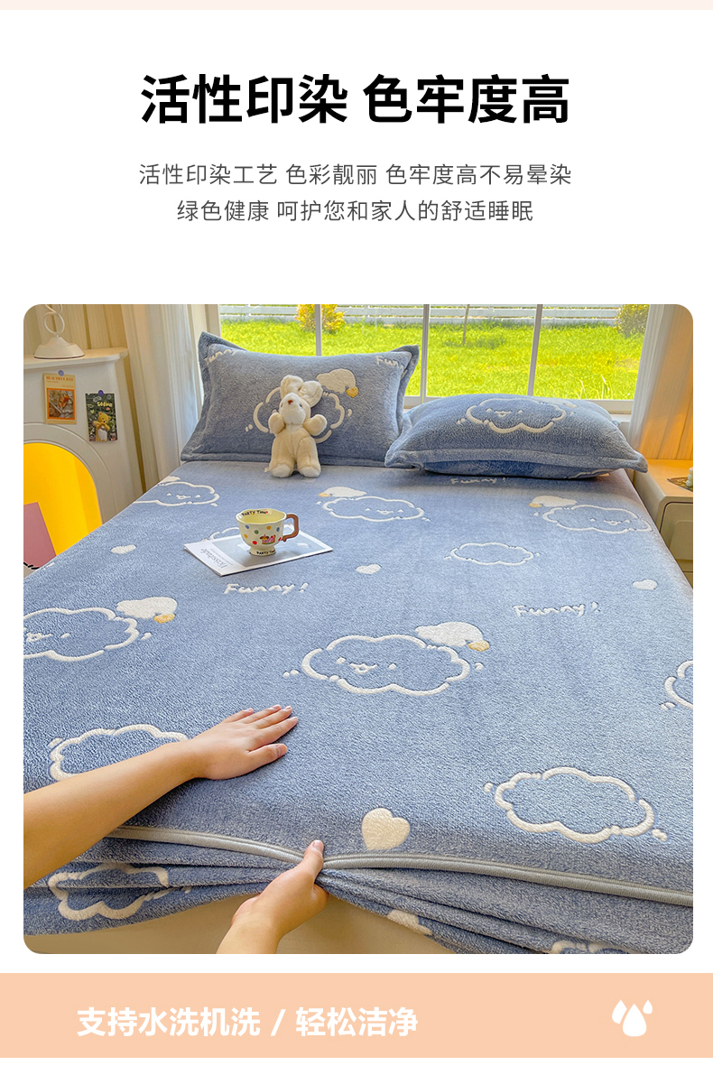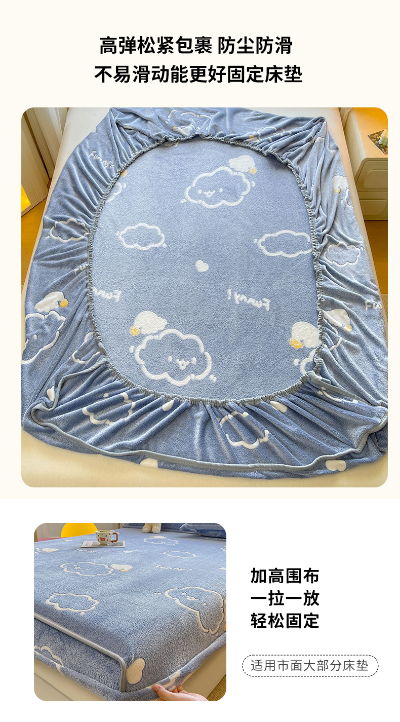 牵梦萦家纺 2025新款雪花绒立体包边床笠 云朵