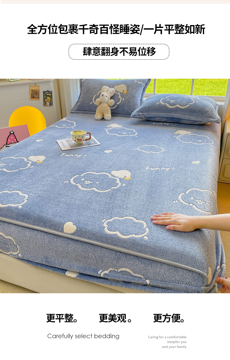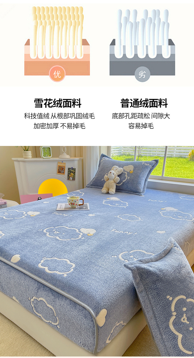 商品名称:牵梦萦家纺 2025新款雪花绒立体包边床笠 云朵