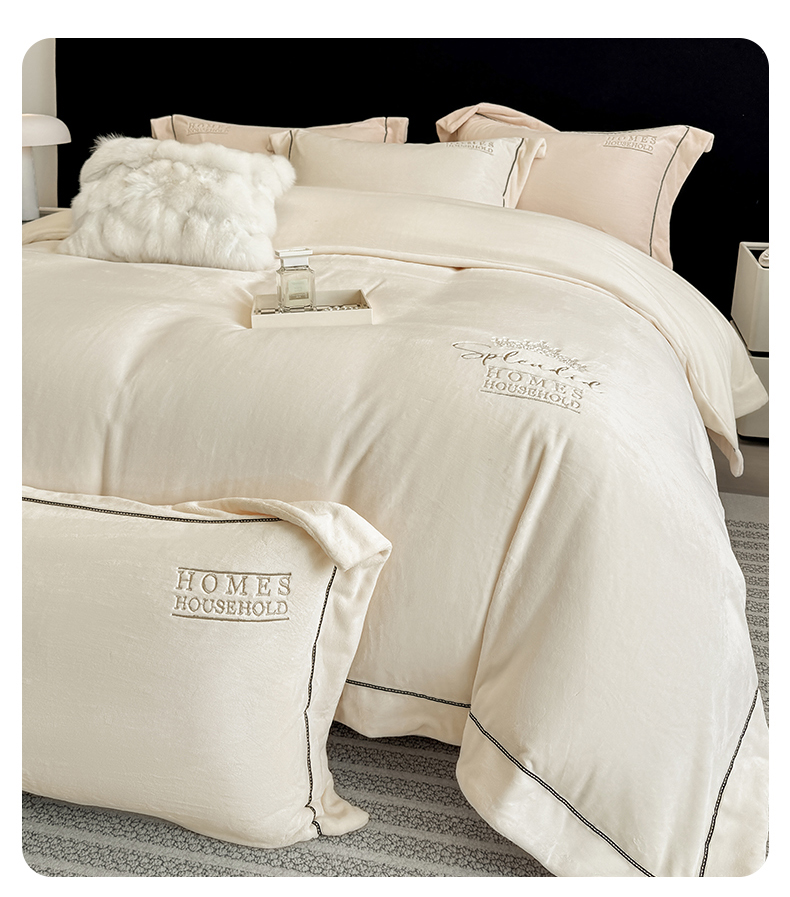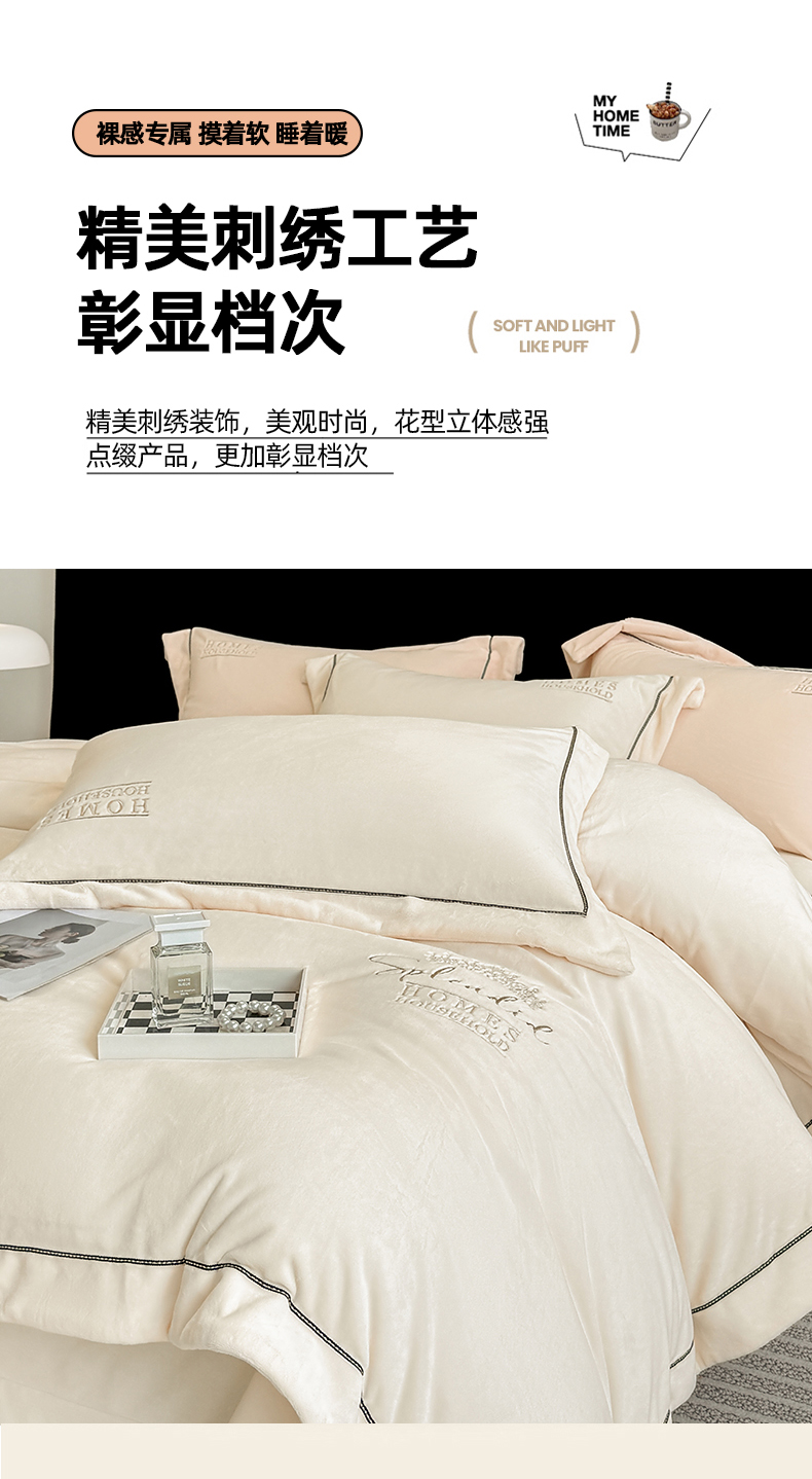 (总)席之家 2025新款刺绣牛奶绒四件套,花语-卡其玉,花语-奶咖,花语-青柠绿,花语-少女粉