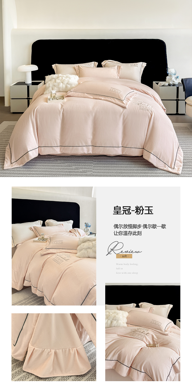 席之家 2025新款75D高克重雅丝绒全消光A类母婴级280克雅丝绒四件套-皇冠 皇冠-粉玉