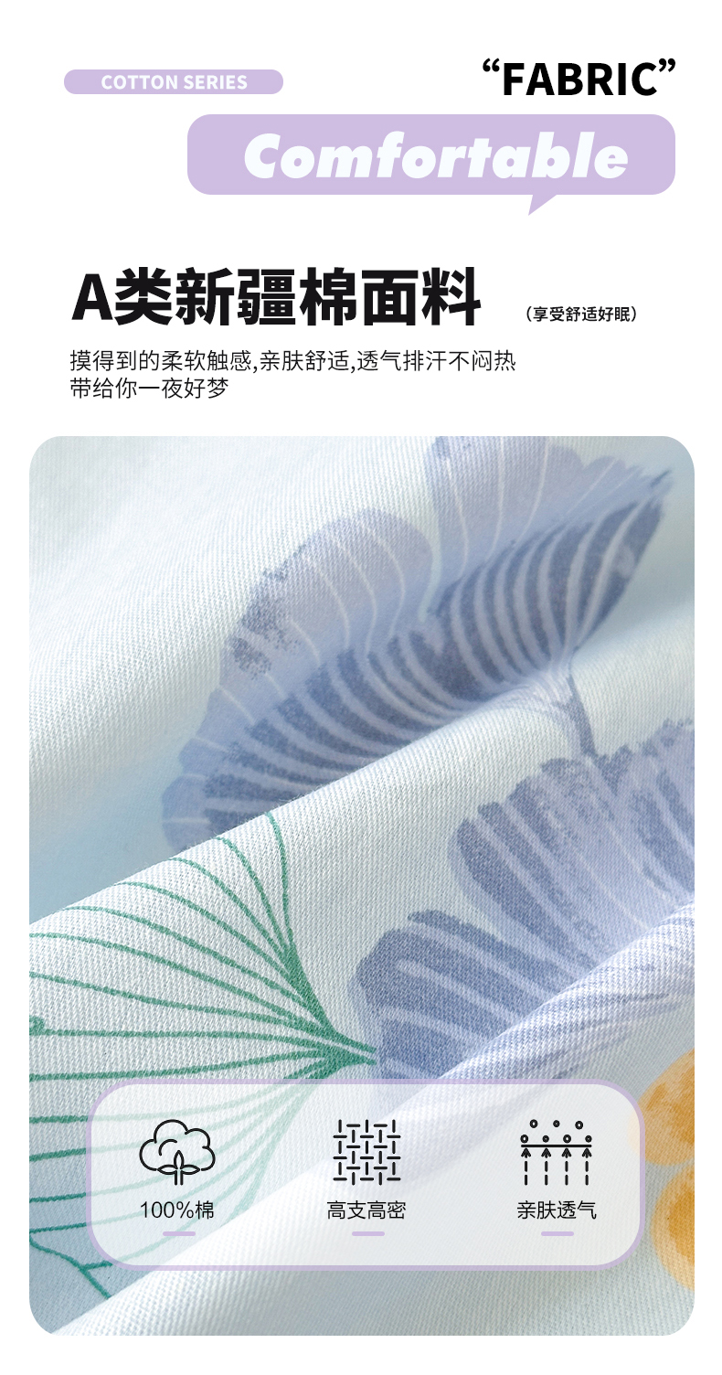 商品名称:拾物记 2025新款A类12868全棉纯棉单床笠床笠单件-提供买家秀和质检报告 银杏叶