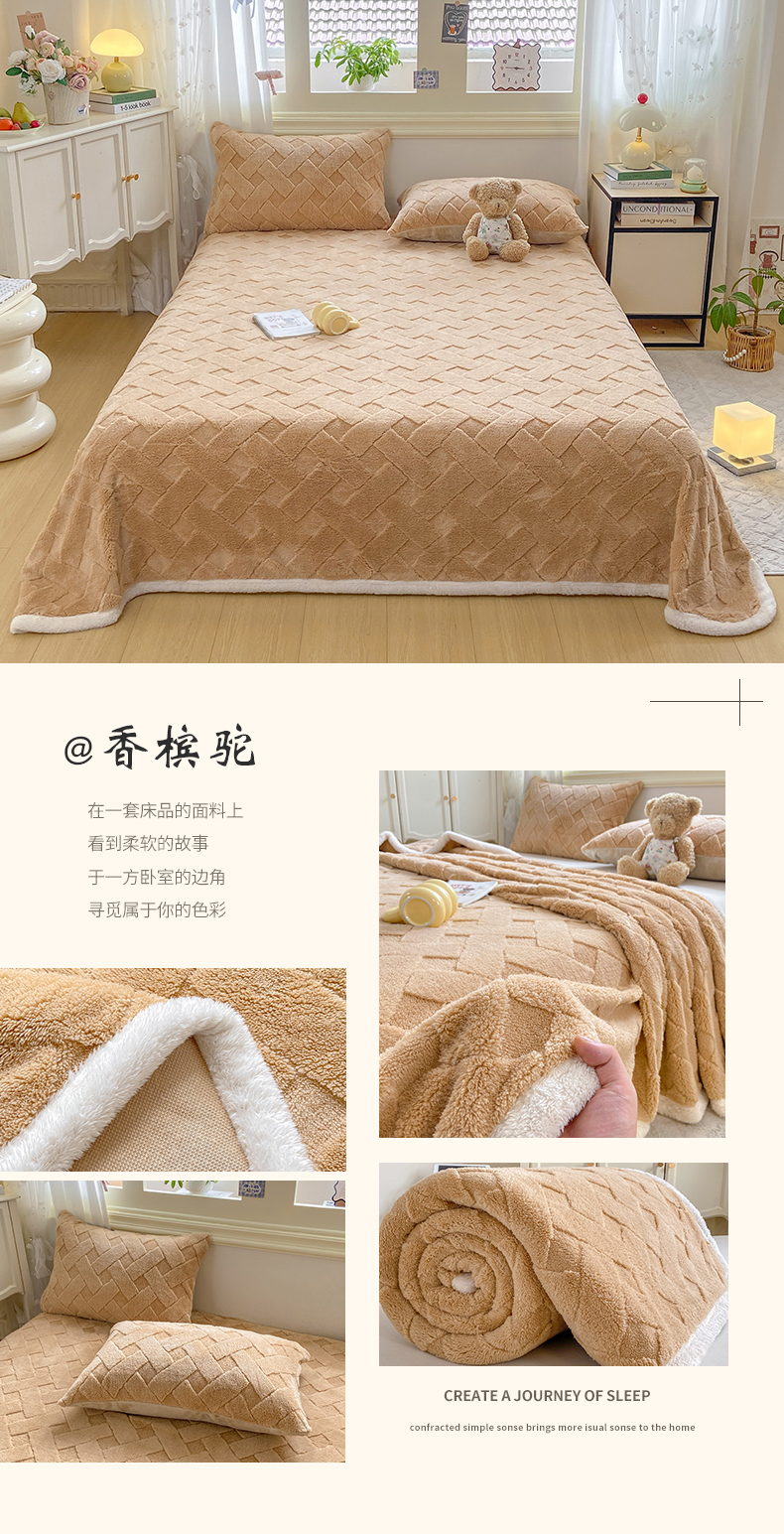 (总)耐思家纺 2025新款加厚提花兔绒塔芙绒单品床单系列,豆沙粉,橄榄绿,高级灰,孔雀蓝,天空蓝,香槟驼,香芋紫,珍珠白