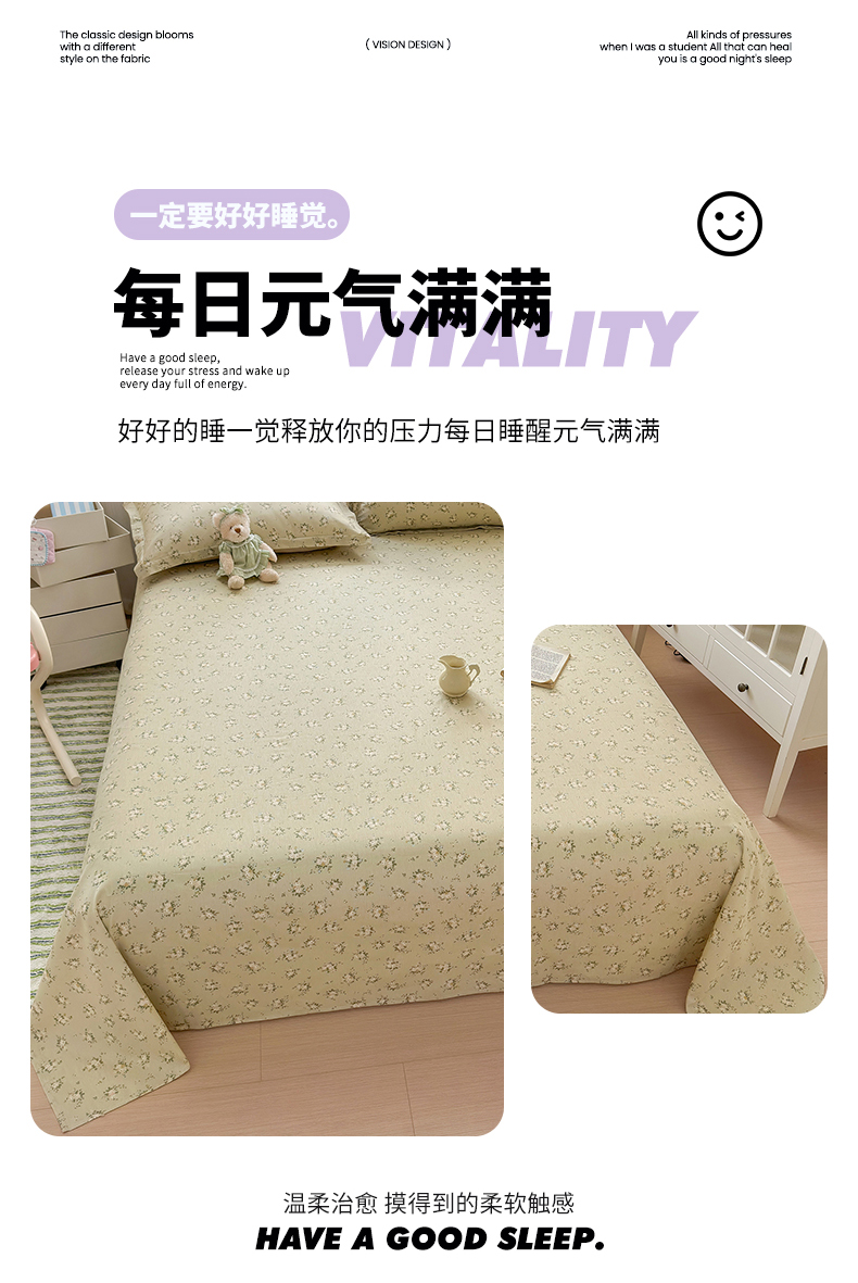 • 91家纺网 家纺一手货源 找家纺 拾物记 2025新款A类12868全棉纯棉单床单床单单件-提供买家秀和质检报告 恋青柠