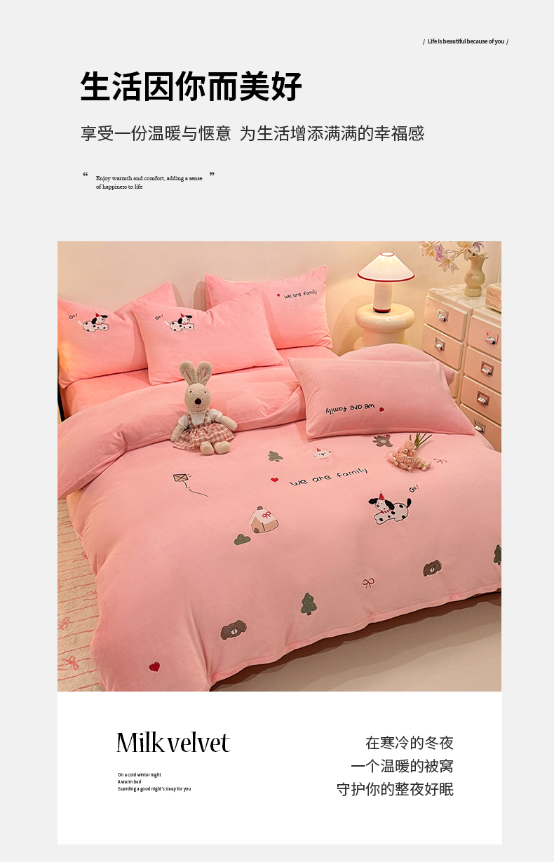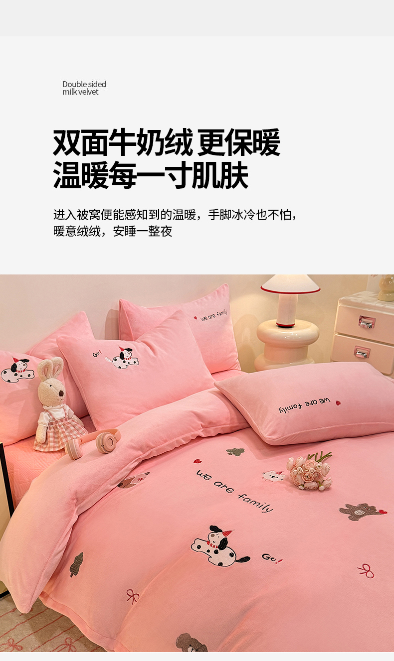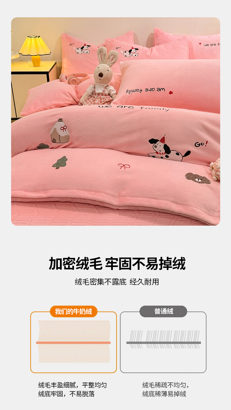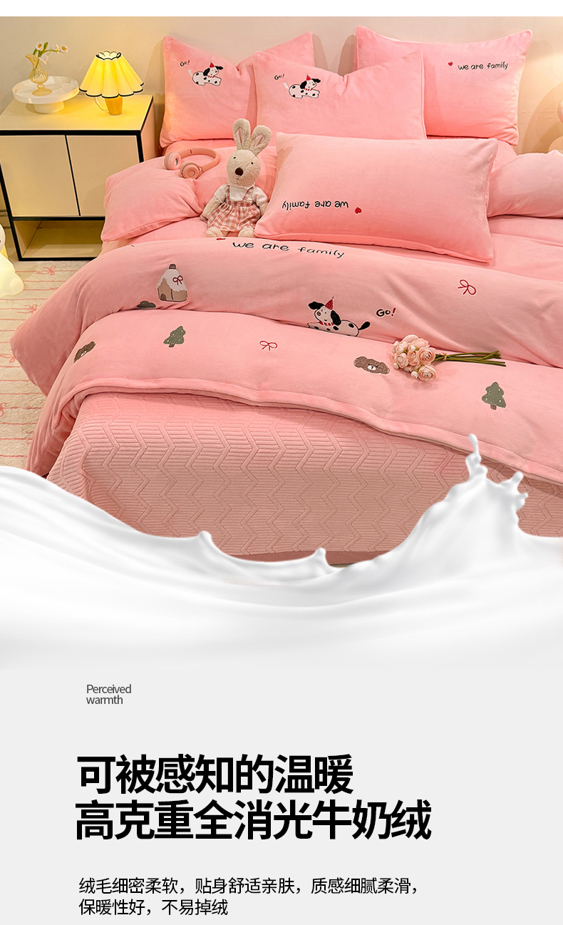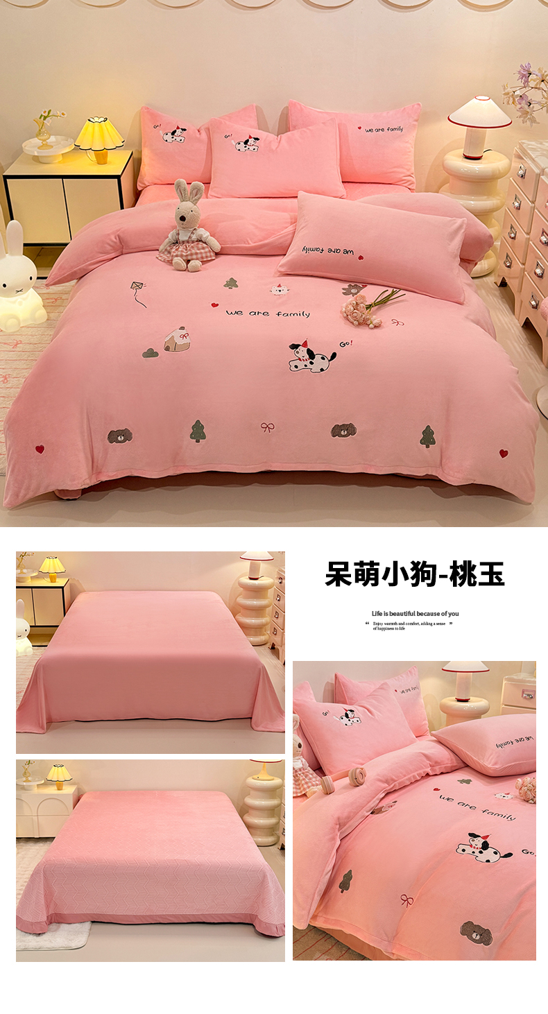 当前位置: 91家纺网 > 商品网购 > 床品套件 > 四件套 > 牛奶绒四件套 > 新方向 2025新款全消光A类刺绣牛奶绒四件套-呆萌小狗 呆萌小狗-桃玉