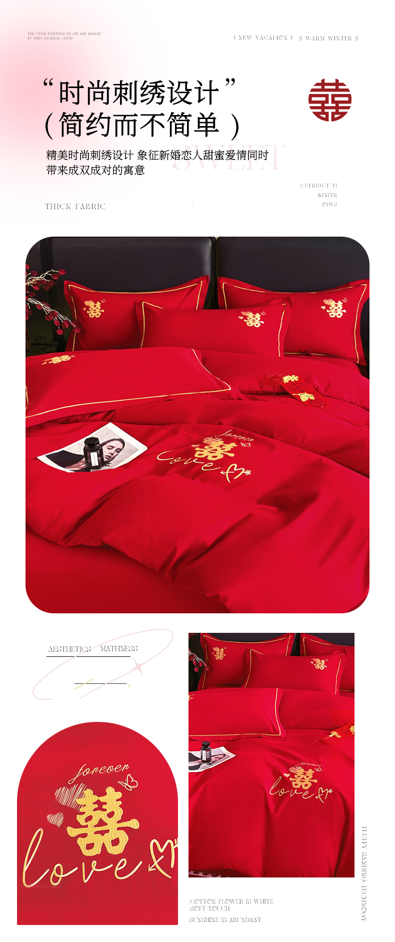 当前位置: 91家纺网 > 商品网购 > 床品套件 > 四件套 > 婚庆四件套 > 艾橙家纺 2025新款大红云朵棉刺绣婚庆系列四件套 相爱一生