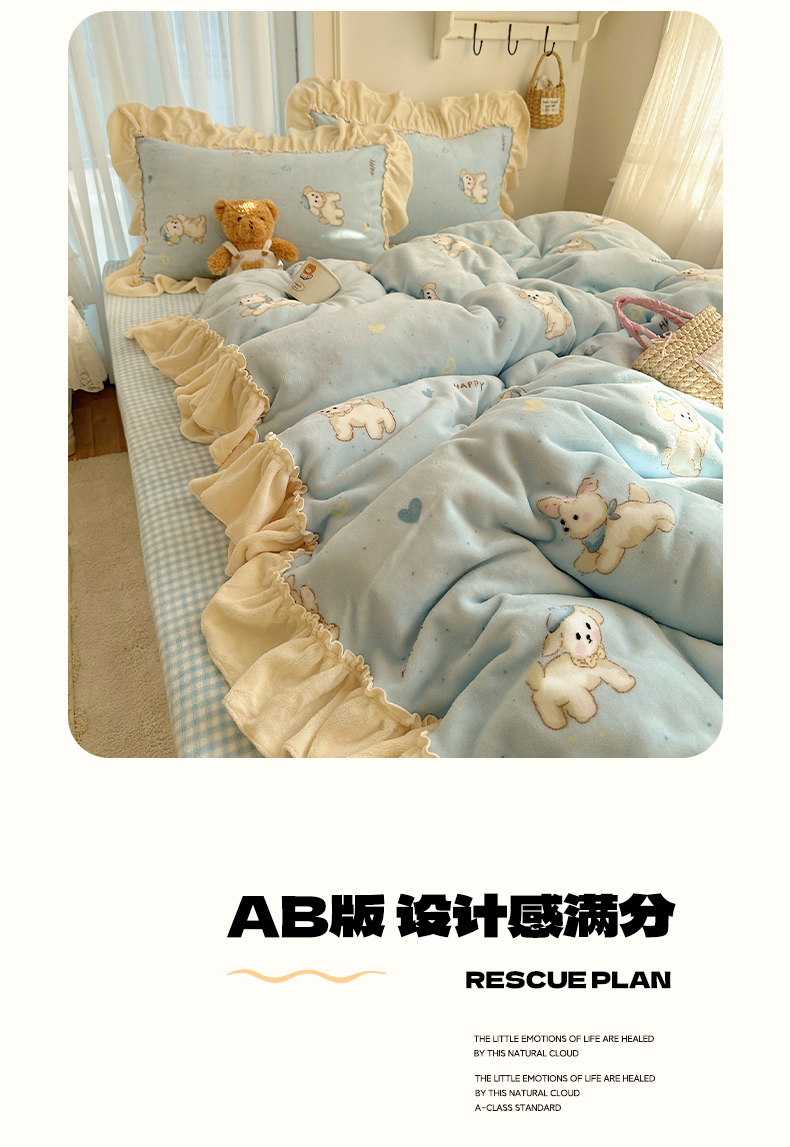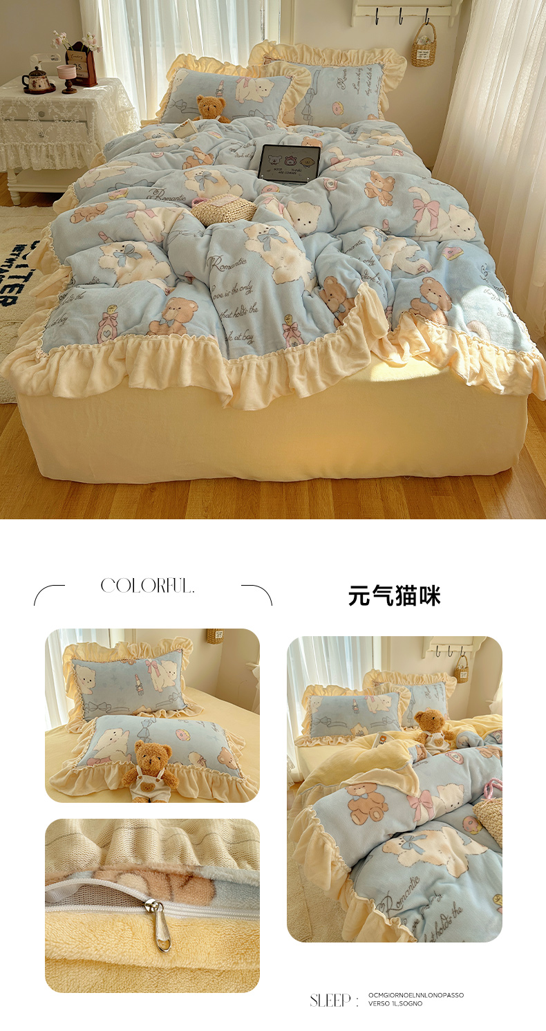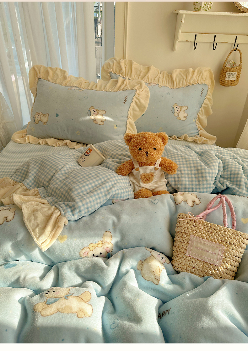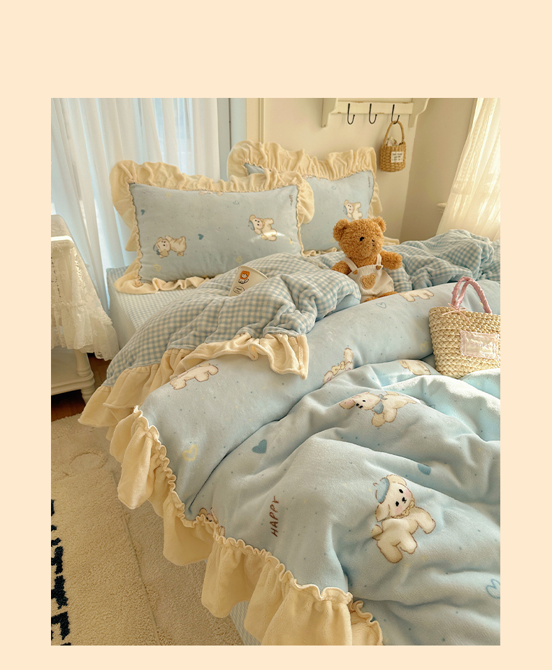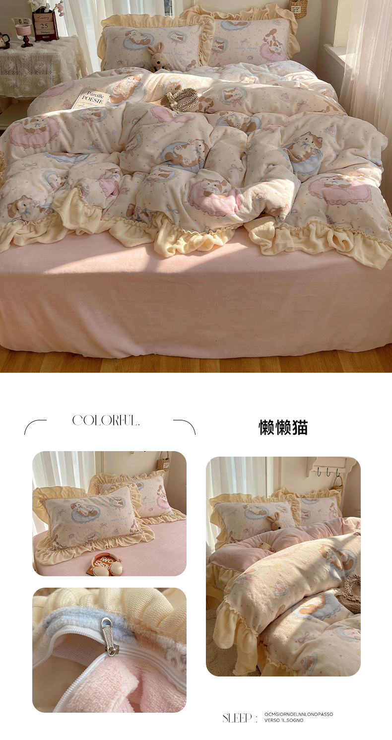 当前位置: 91家纺网 > 商品网购 > 床品套件 > 四件套 > 牛奶绒四件套 > 瑞莱 上新2025年秋冬新款A类200克牛奶绒卡通印花四件套 奶团帽子小狗
