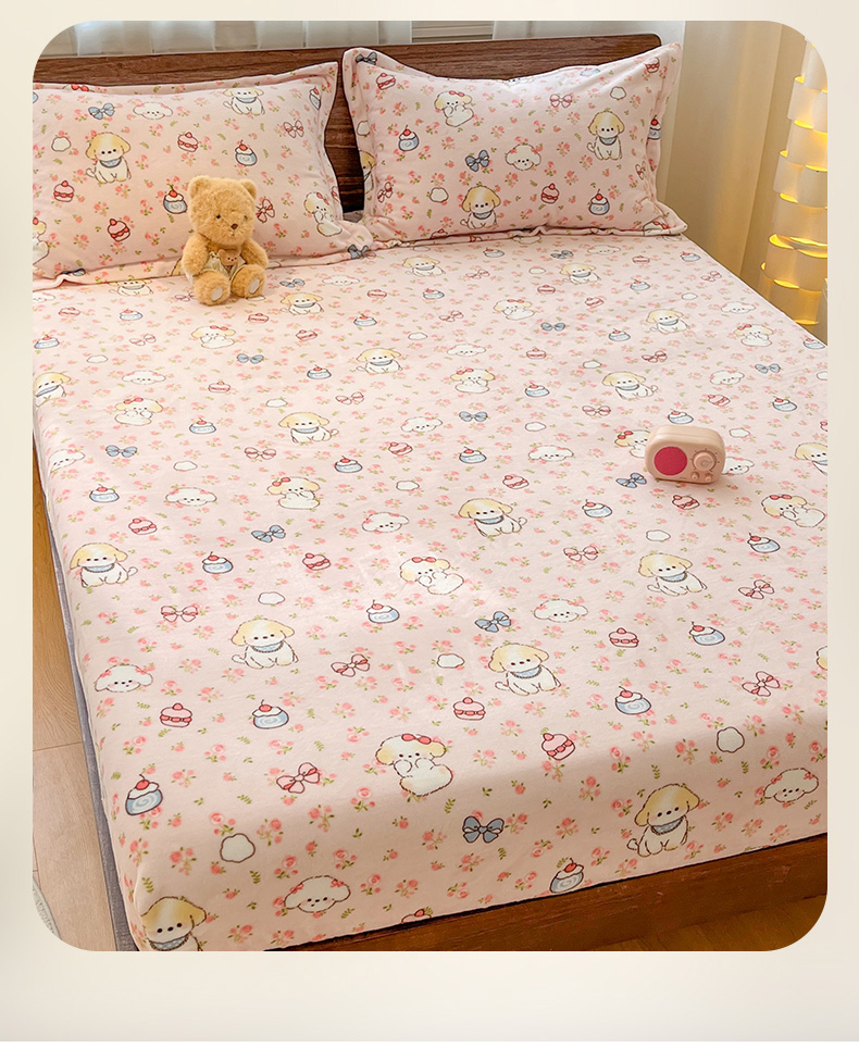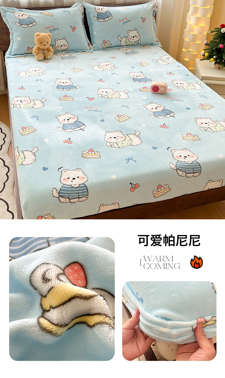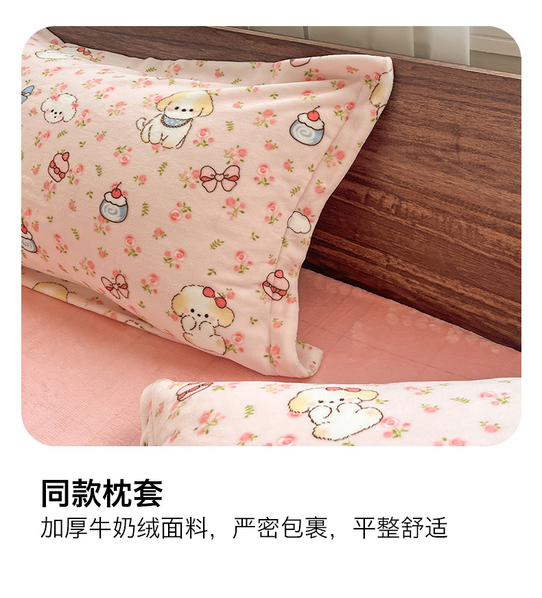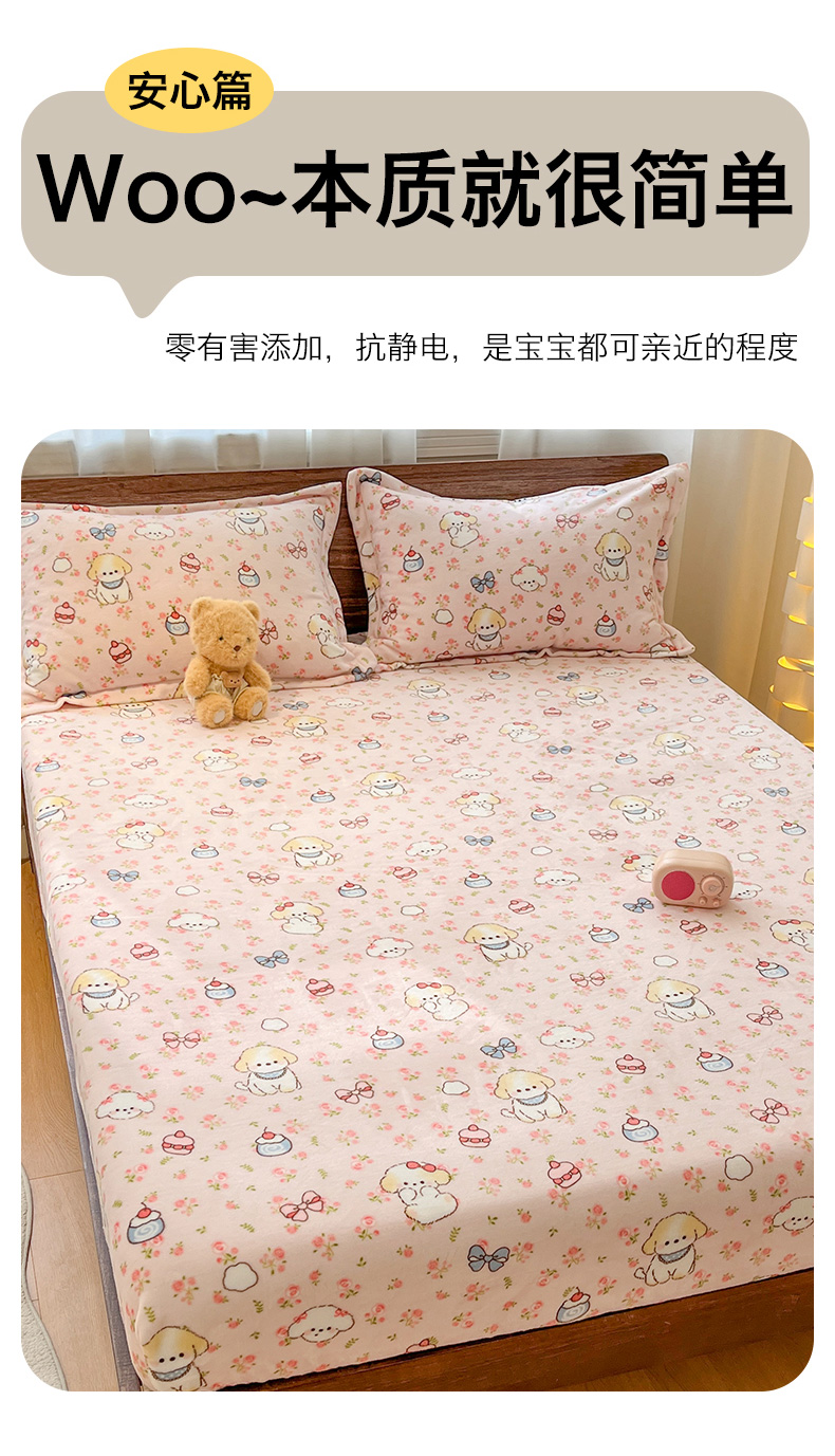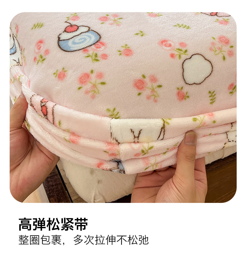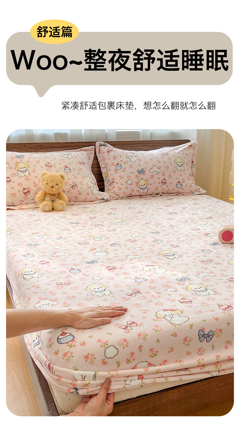 寻米 2025新款加厚牛奶绒印花床笠-大床牛奶绒床笠一号 玫瑰甜心