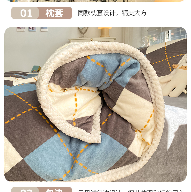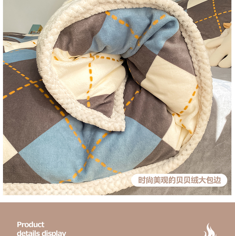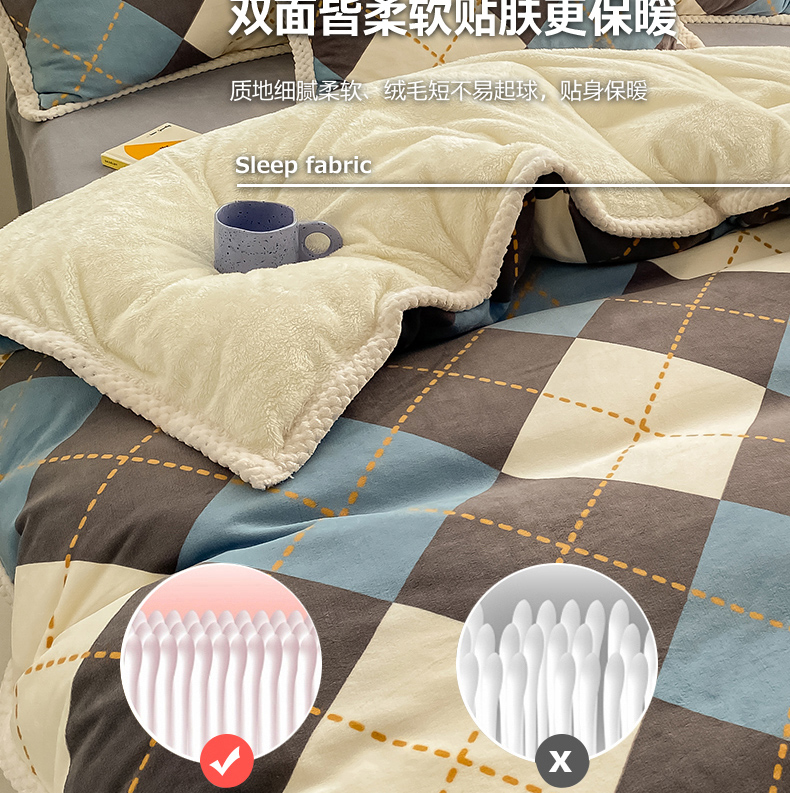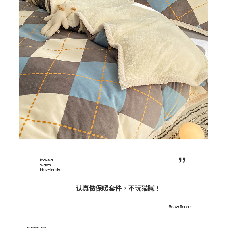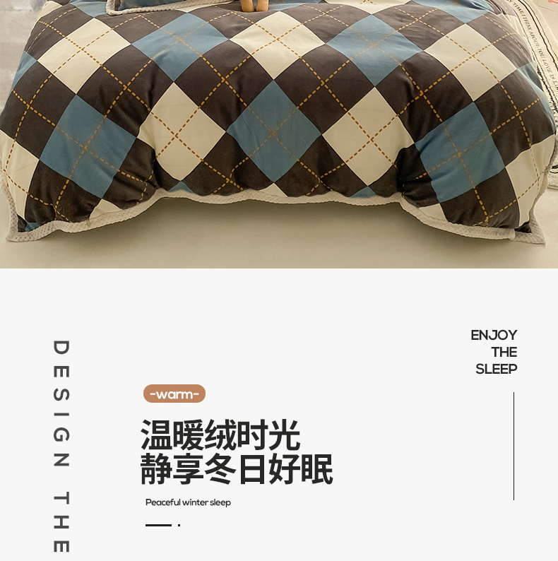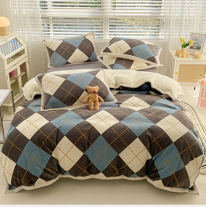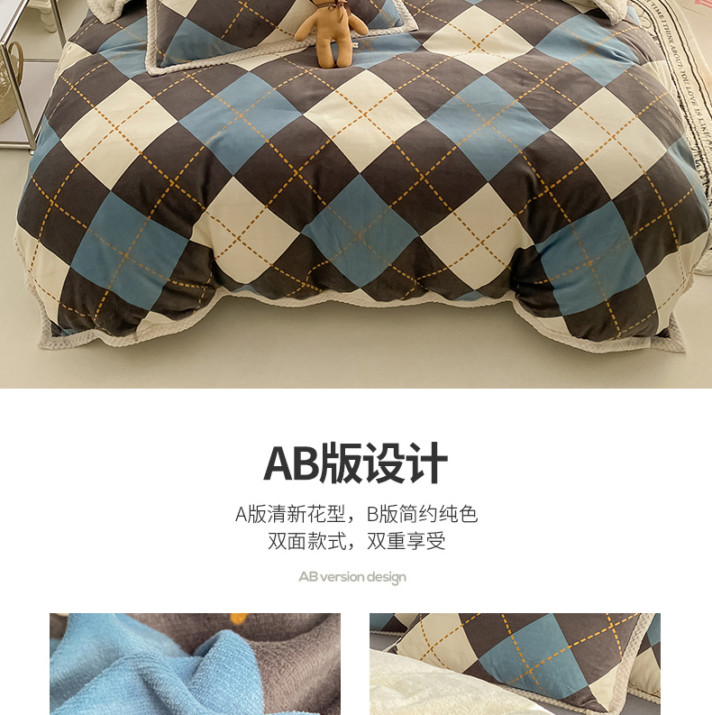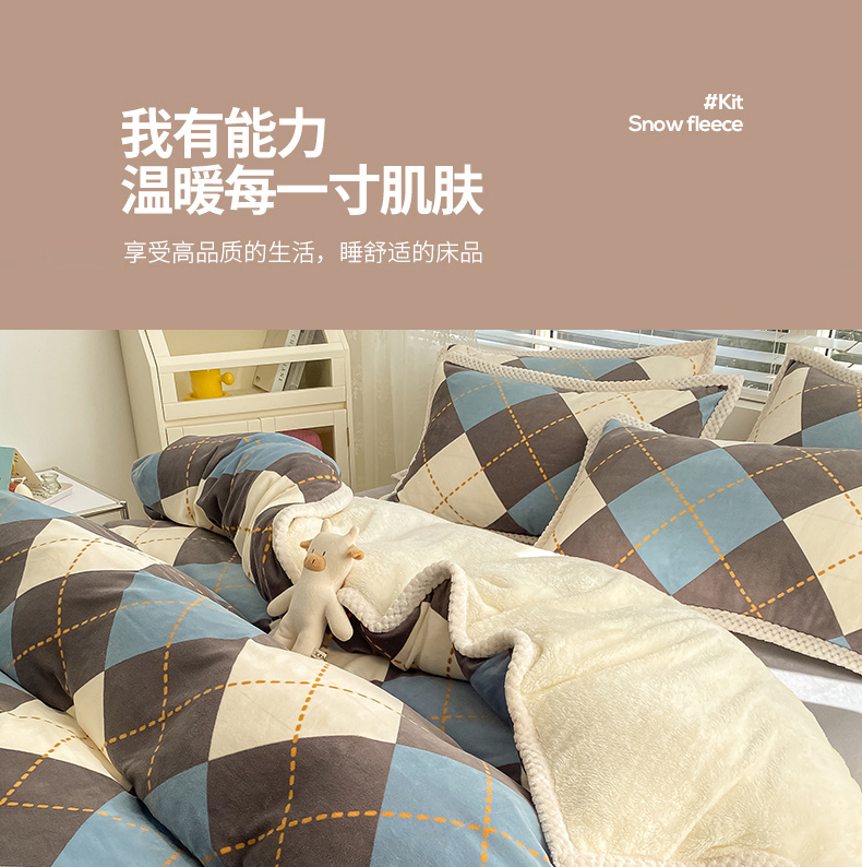 商品名称:琪格格纺织 2025新款A牛奶绒B兔兔绒保暖印花四件套 大包边绒菱形空间