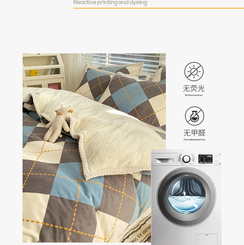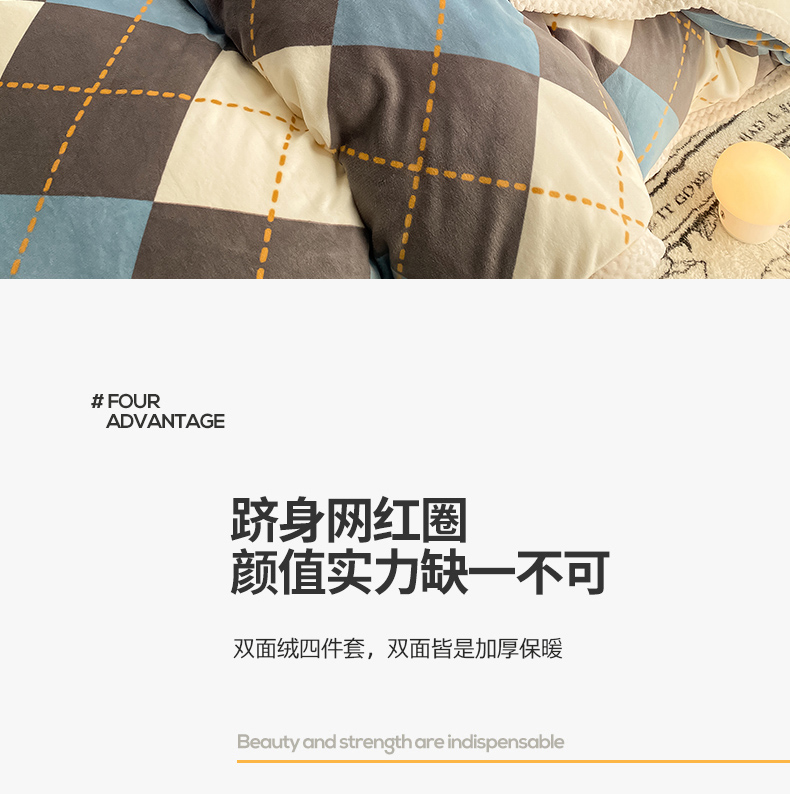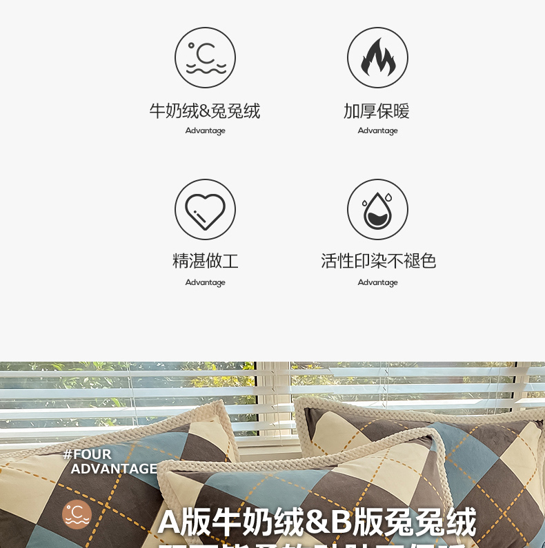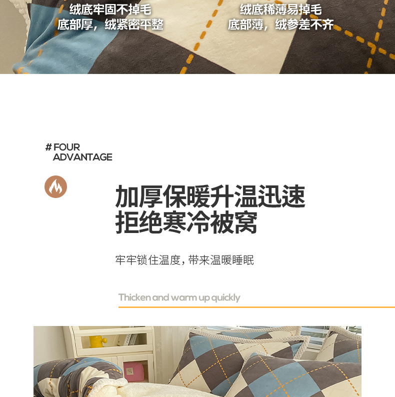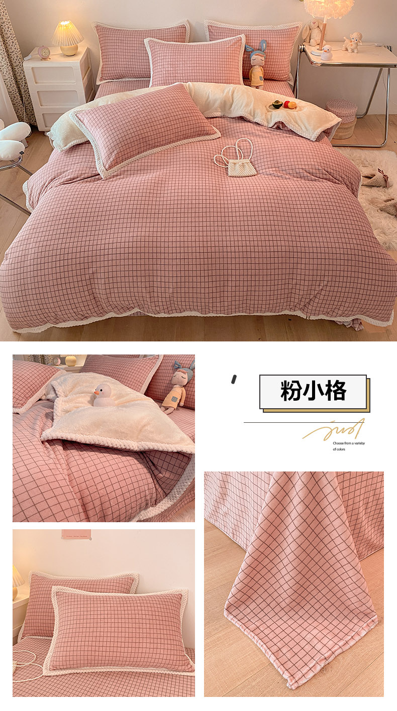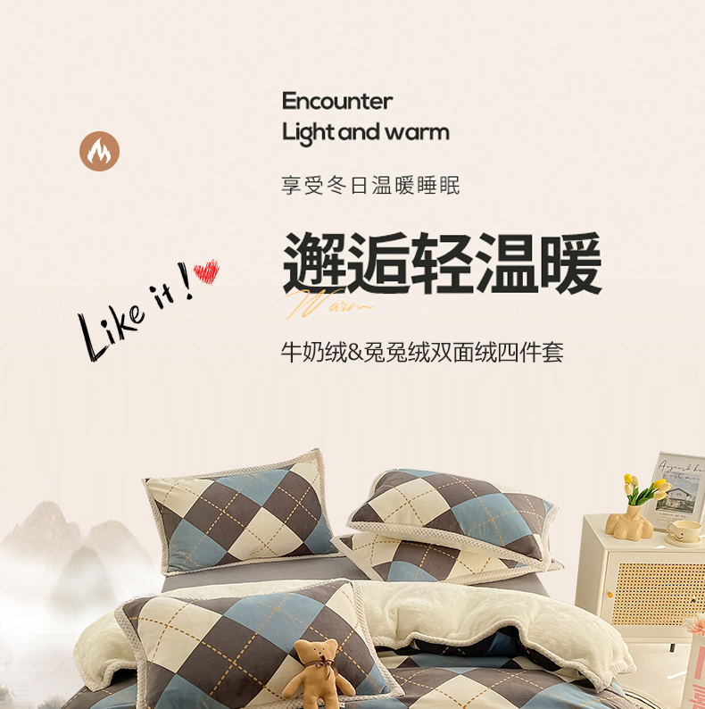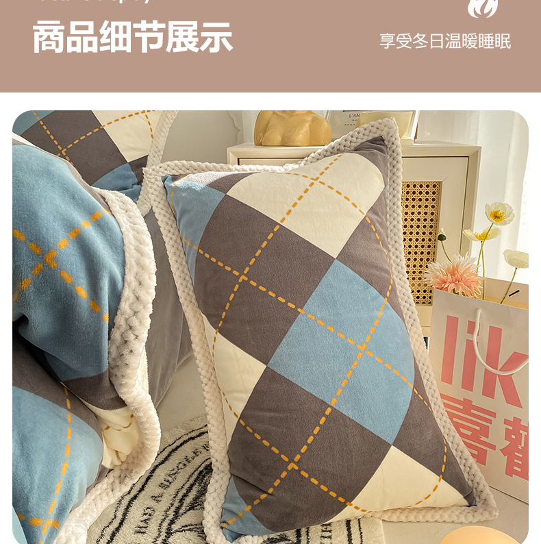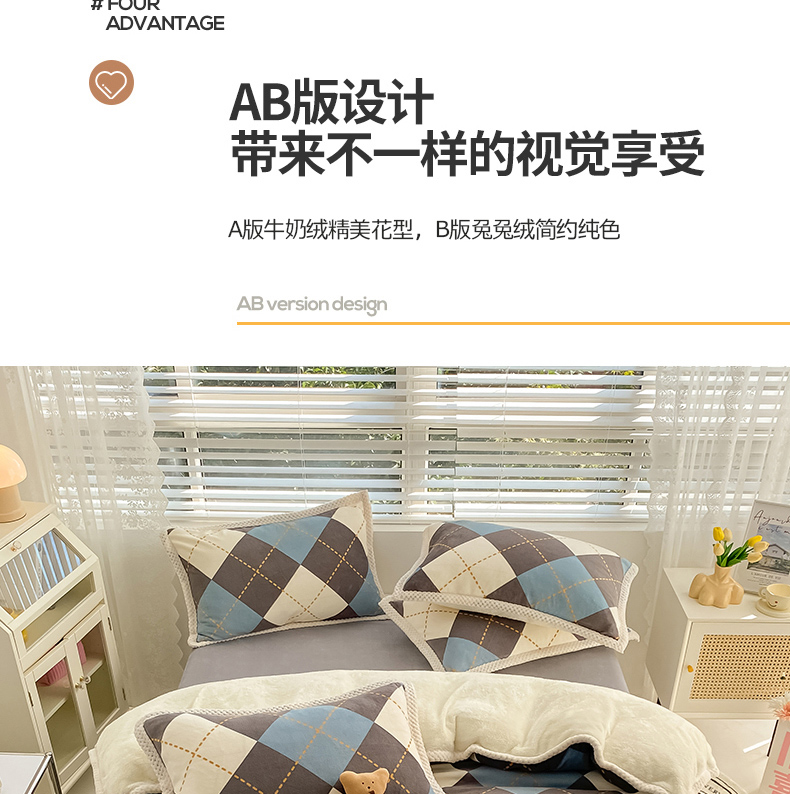 商品名称:琪格格纺织 2025新款A牛奶绒B兔兔绒保暖印花四件套 大包边绒菱形空间