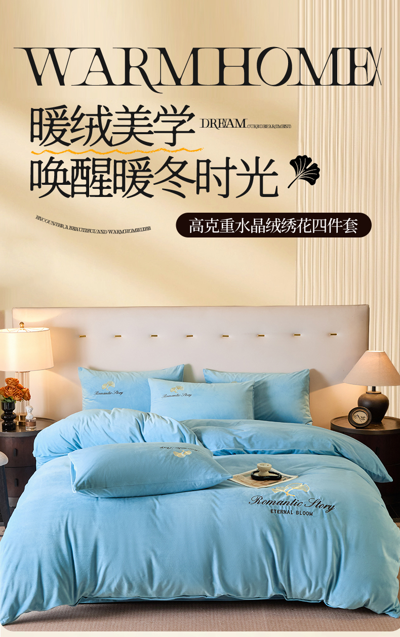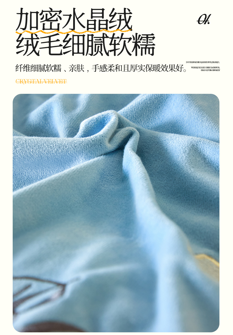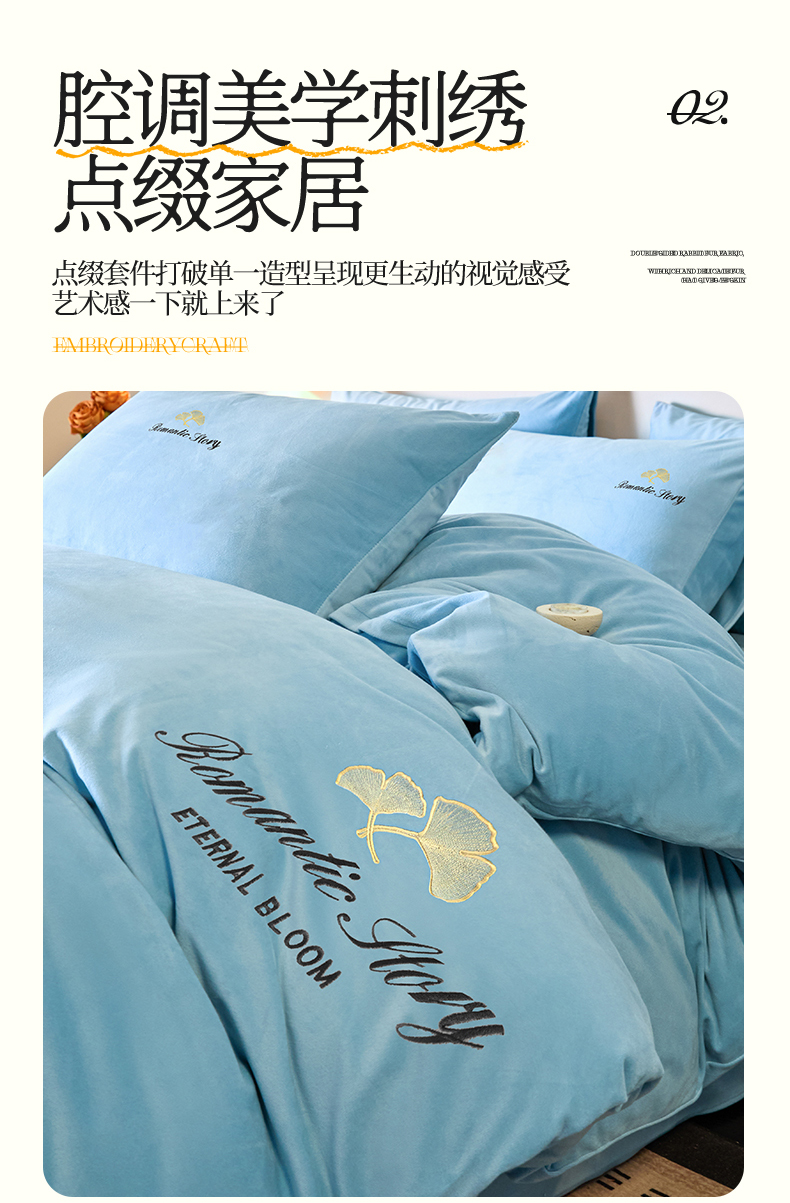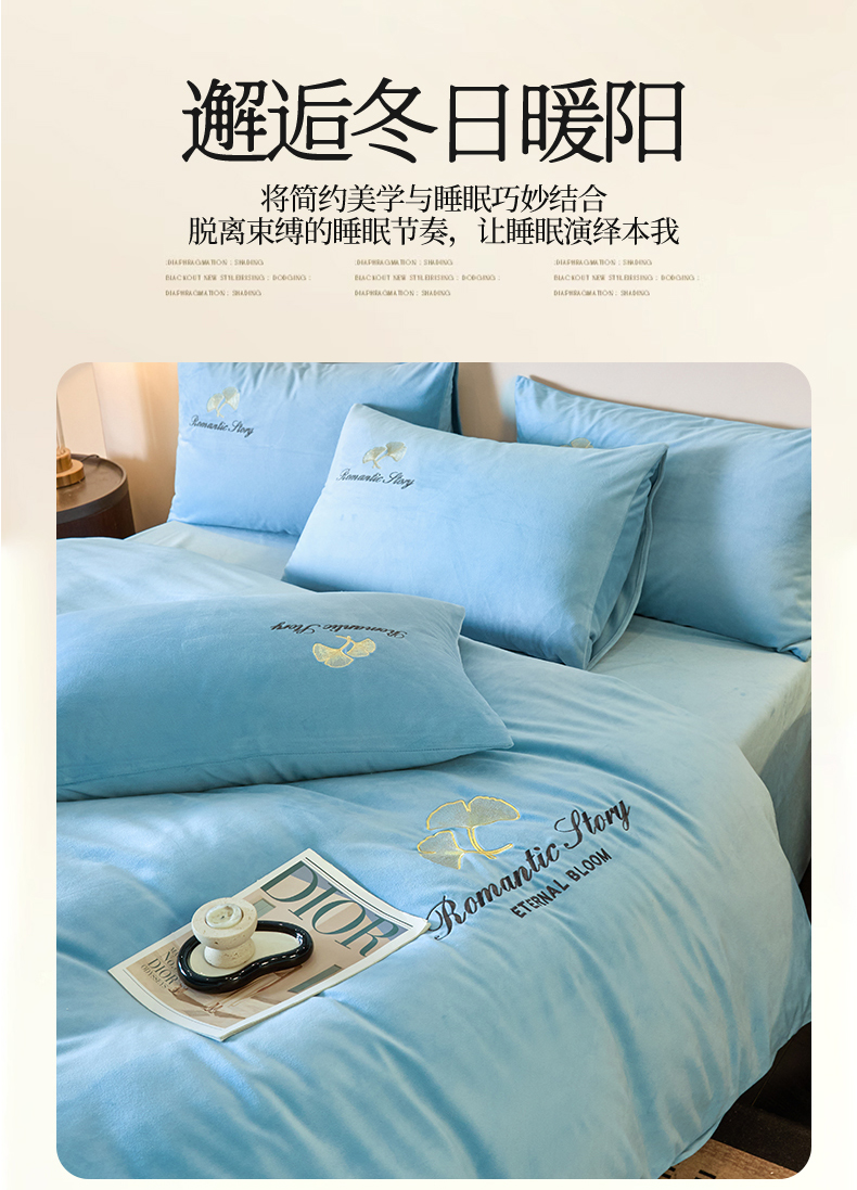 当前位置: 91家纺网 > 商品网购 > 床品套件 > 四件套 > 水晶绒四件套 > 云棉坊 2025新款高克重水晶绒绣花四件套-杏叶系列 杏叶-天空兰