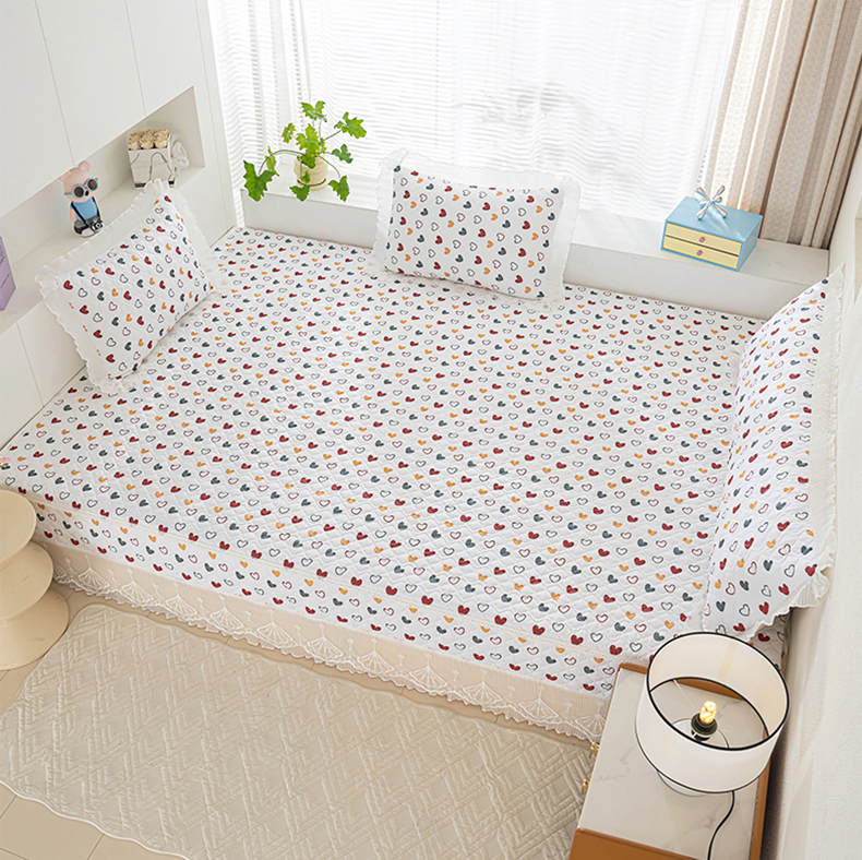 • 91家纺网 家纺一手货源 找家纺 冬然 2024新款全棉防滑榻榻米垫子炕垫纯棉床盖夹棉床单纯棉床单彩色爱心