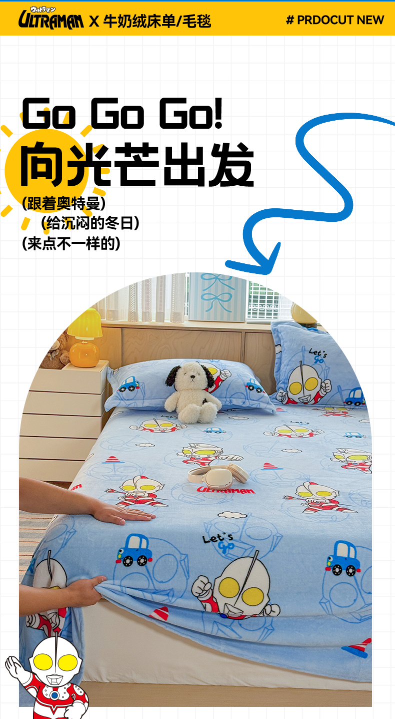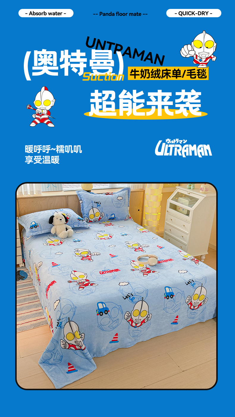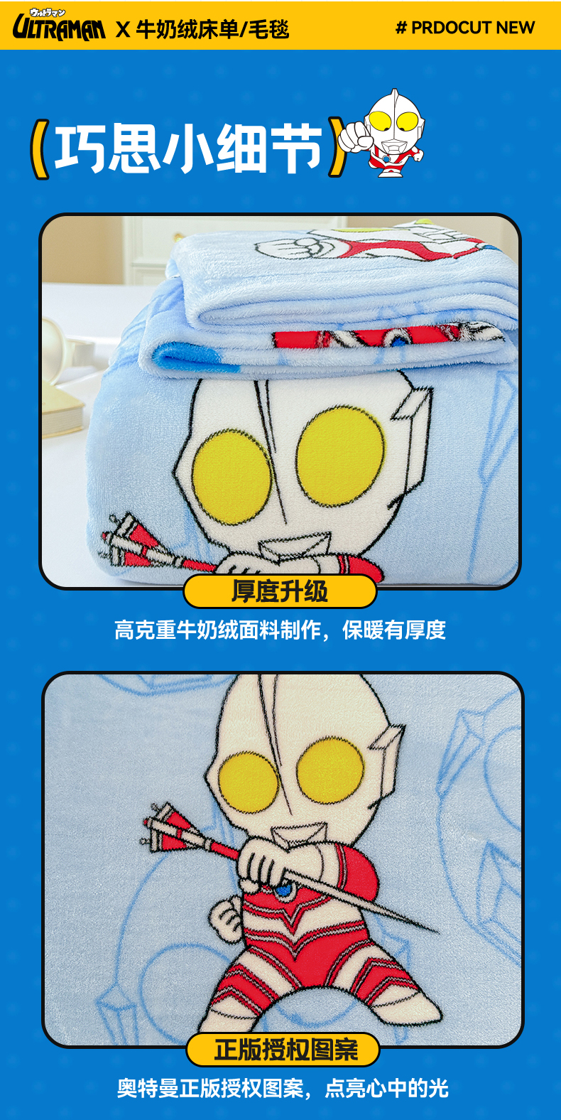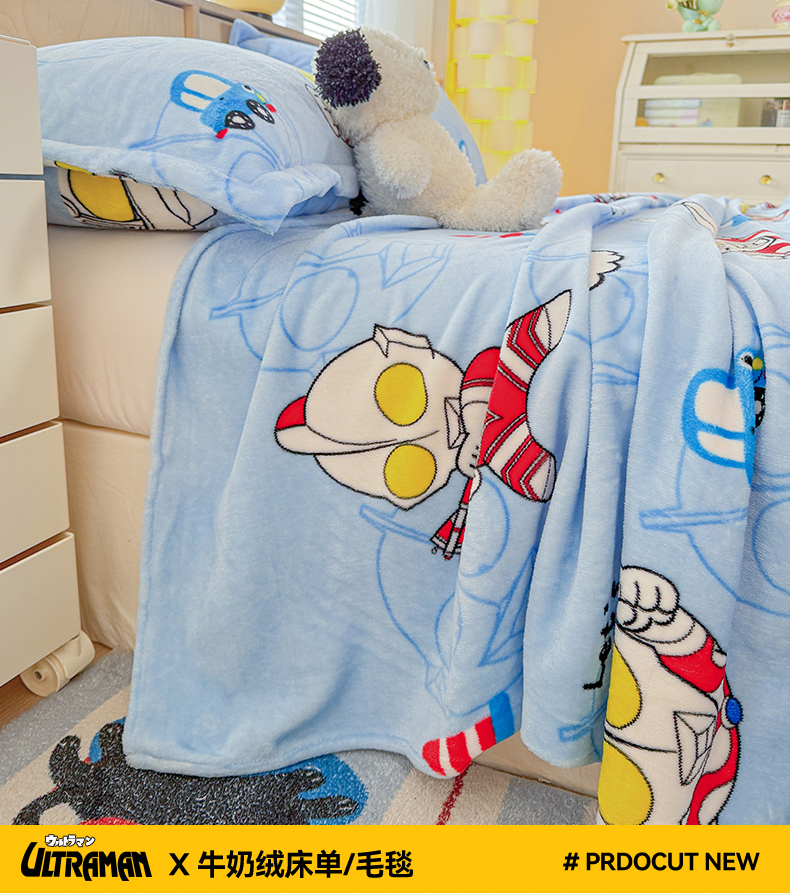 • 91家纺网 家纺一手货源 找家纺 名兮家居 2025新款经典奥特曼-三丽鸥高克重牛奶绒床单 云朵奥特曼
