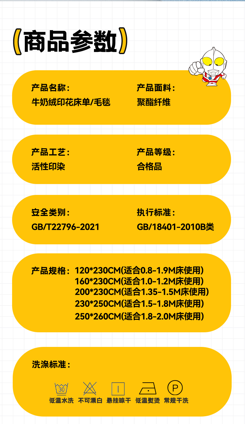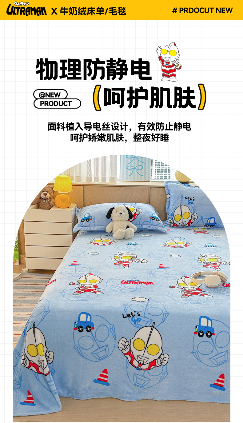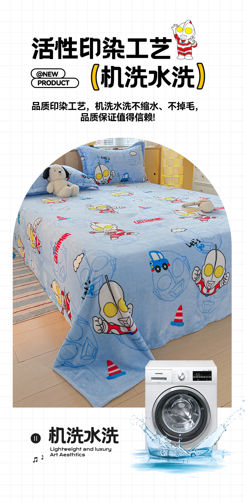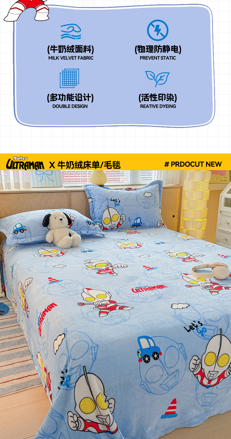 • 91家纺网 家纺一手货源 找家纺 名兮家居 2025新款经典奥特曼-三丽鸥高克重牛奶绒床单 云朵奥特曼
