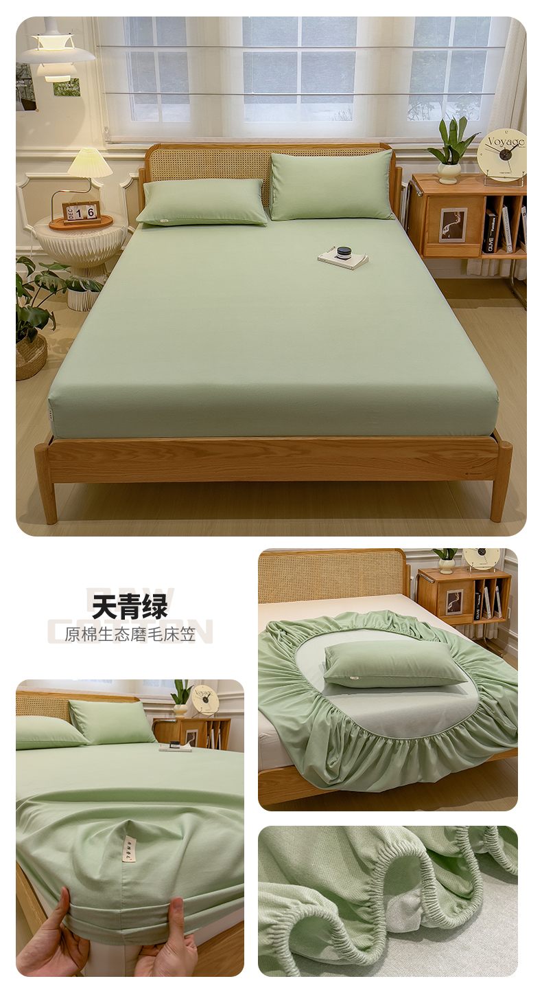商品名称:芃成家纺 2025新款原棉生态磨毛单床笠 墨染绿