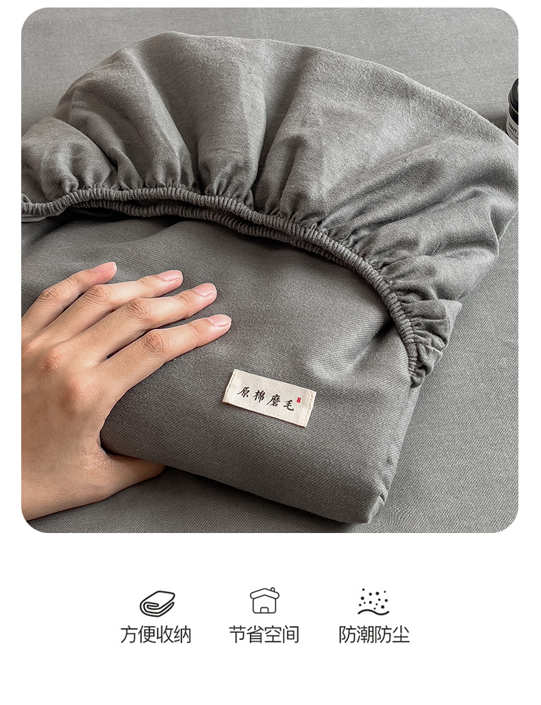 芃成家纺 2025新款原棉生态磨毛单床笠 墨染绿