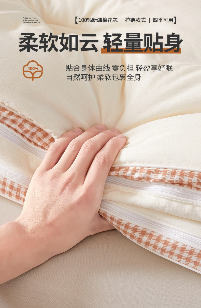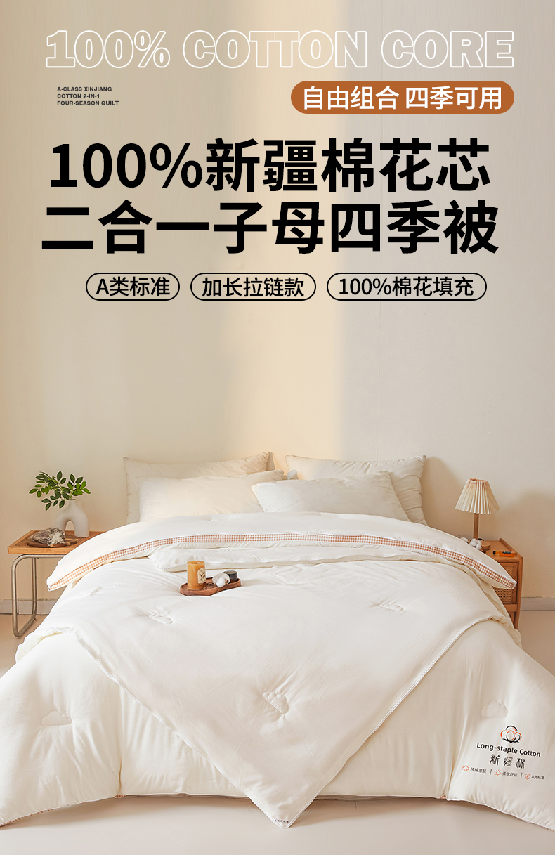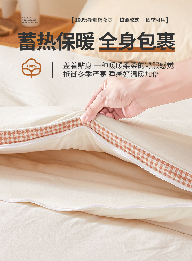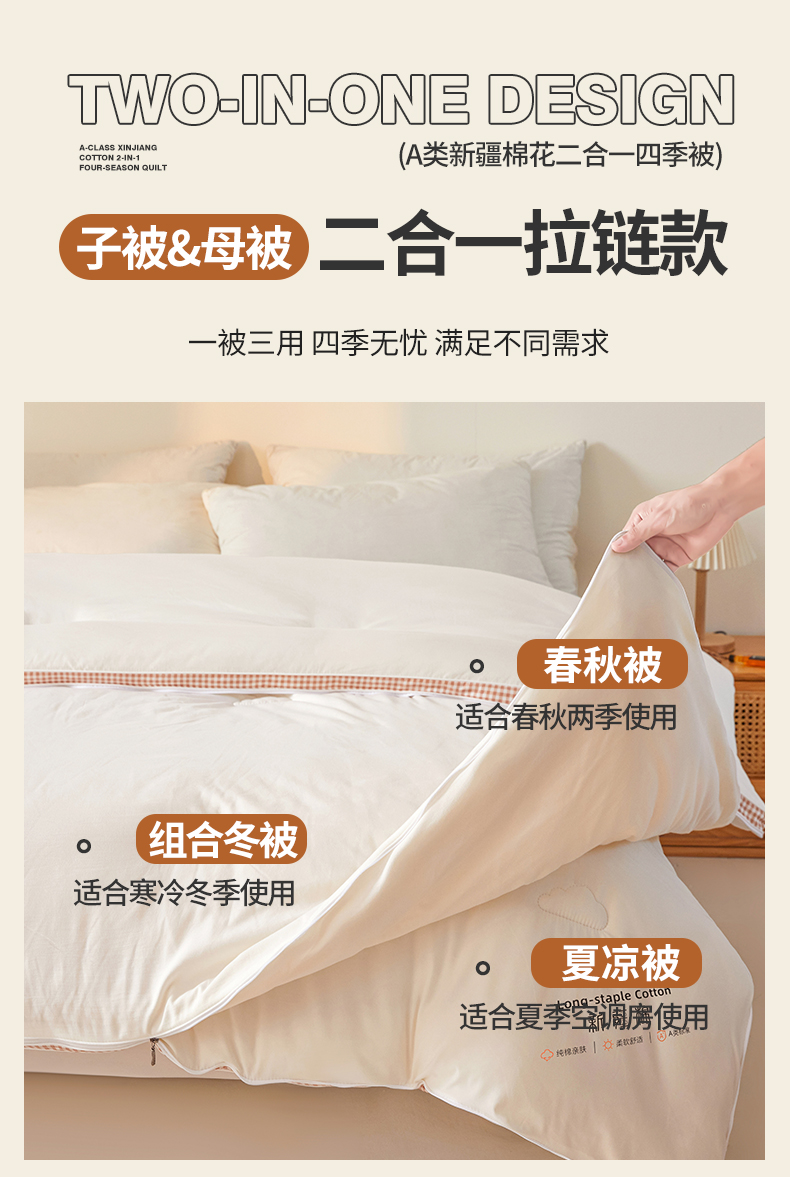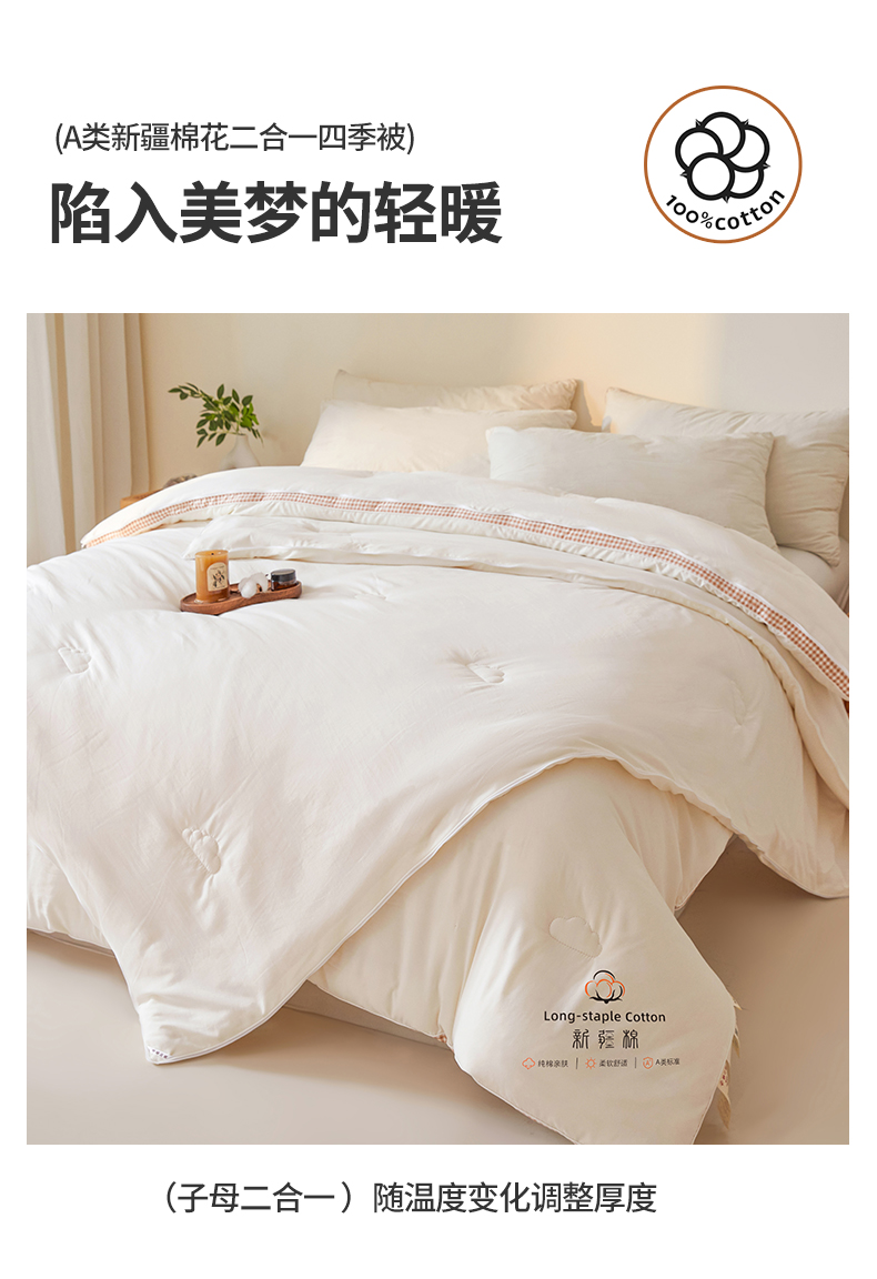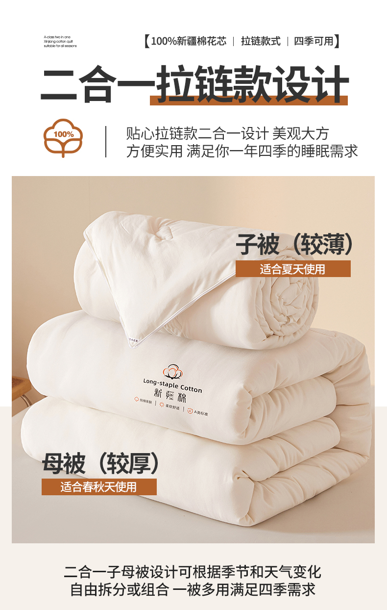 商品名称:(总)思雅庭 2025新款100%新疆棉花被二合一子母被立体边冬被被子被芯