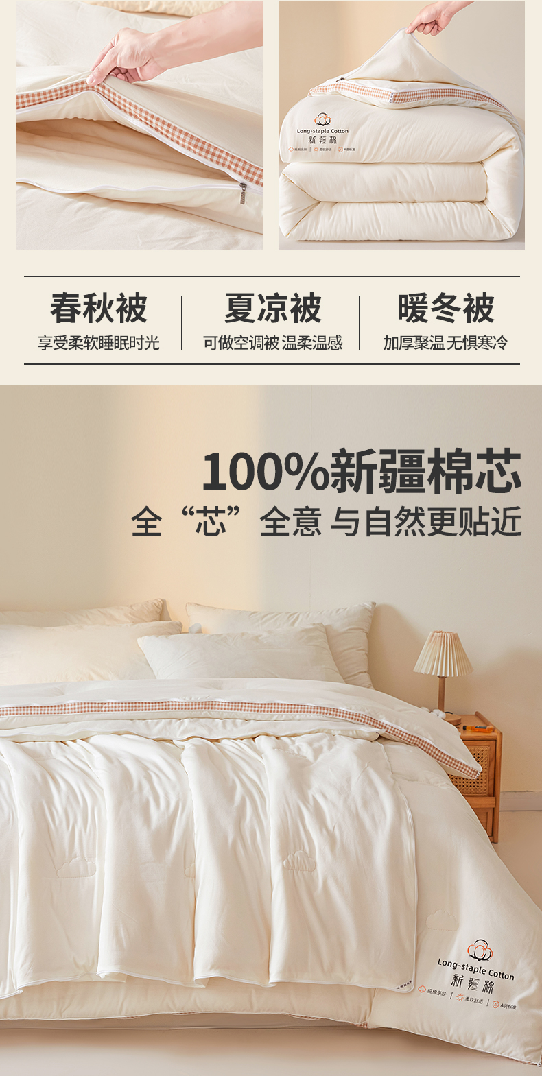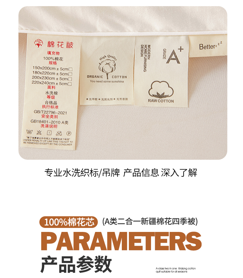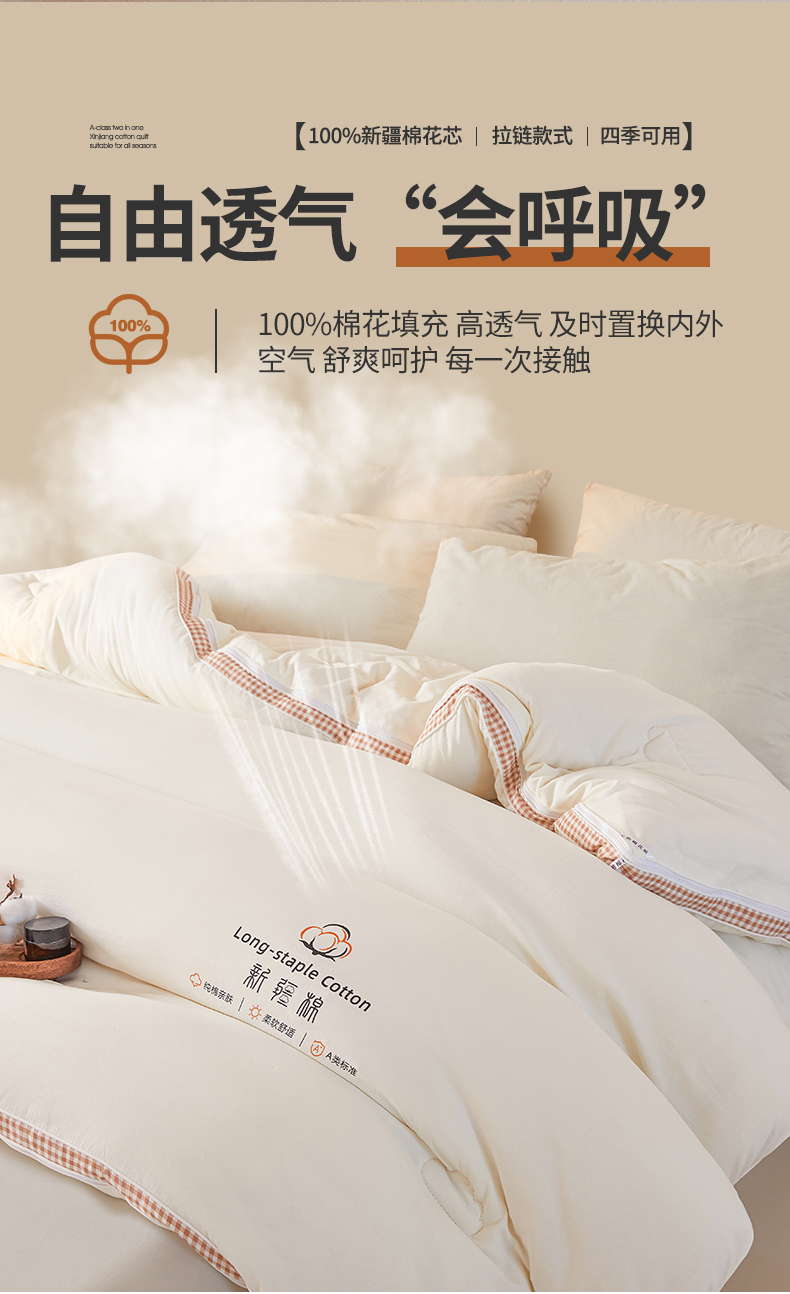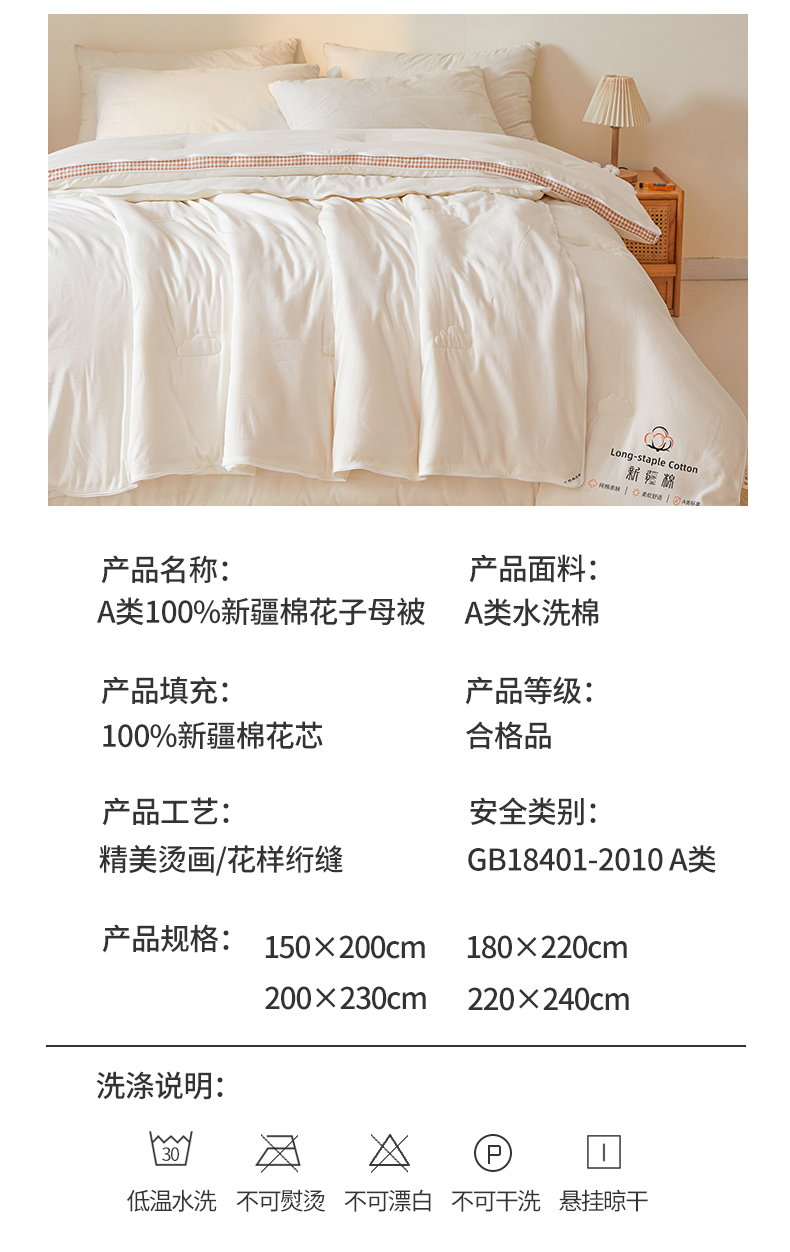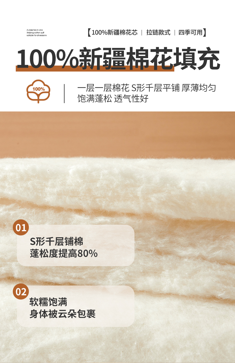 商品名称:(总)思雅庭 2025新款100%新疆棉花被二合一子母被立体边冬被被子被芯