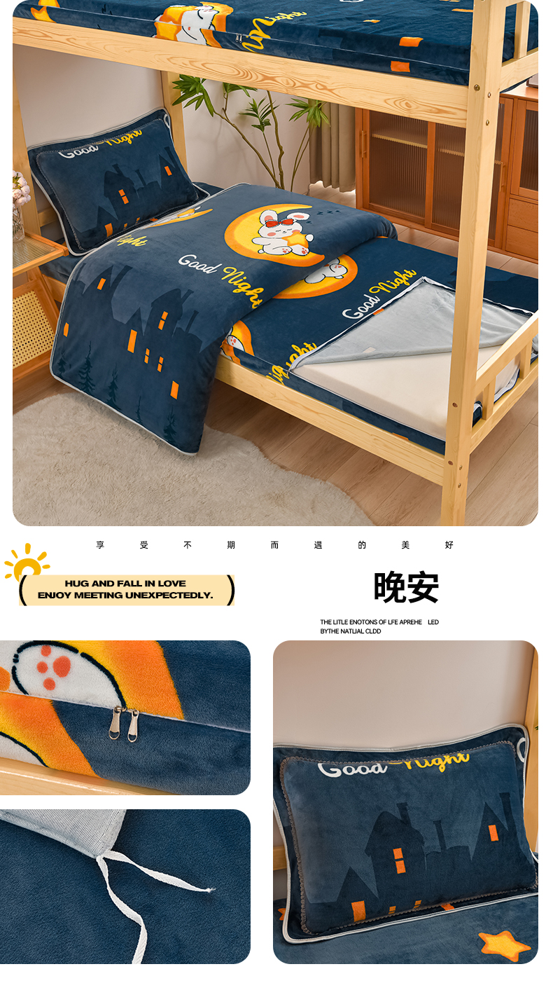 (总)居尚家纺 2025新款牛奶绒学生三件套床褥套床笠三件套,可爱熊,灰兰格,一鹿有你-灰,晚安,绅士灰,绅士格,极简主义,欢乐兔,嘟嘟熊,草莓熊